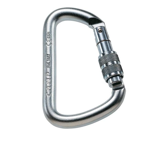 Суперпрочный стальной карабин D-образной формы отличается очень широким проемом в открытом состоянии, муфтованной защелкой и «носиком» keylock, что облегчает вщелкивание.