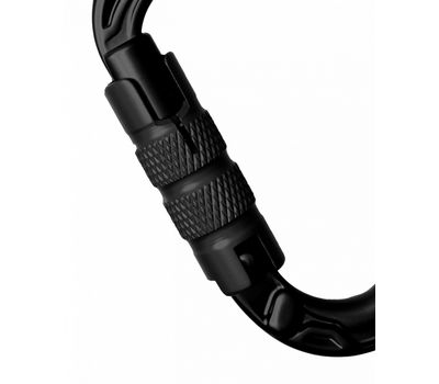 - Карабін відкривається однією рукою. Механізм потребує певного тренування, проте забезпечує найвищий рівень захисту. Завдяки текстурній поверхні муфти з нею легко працювати, особливо у рукавичках.