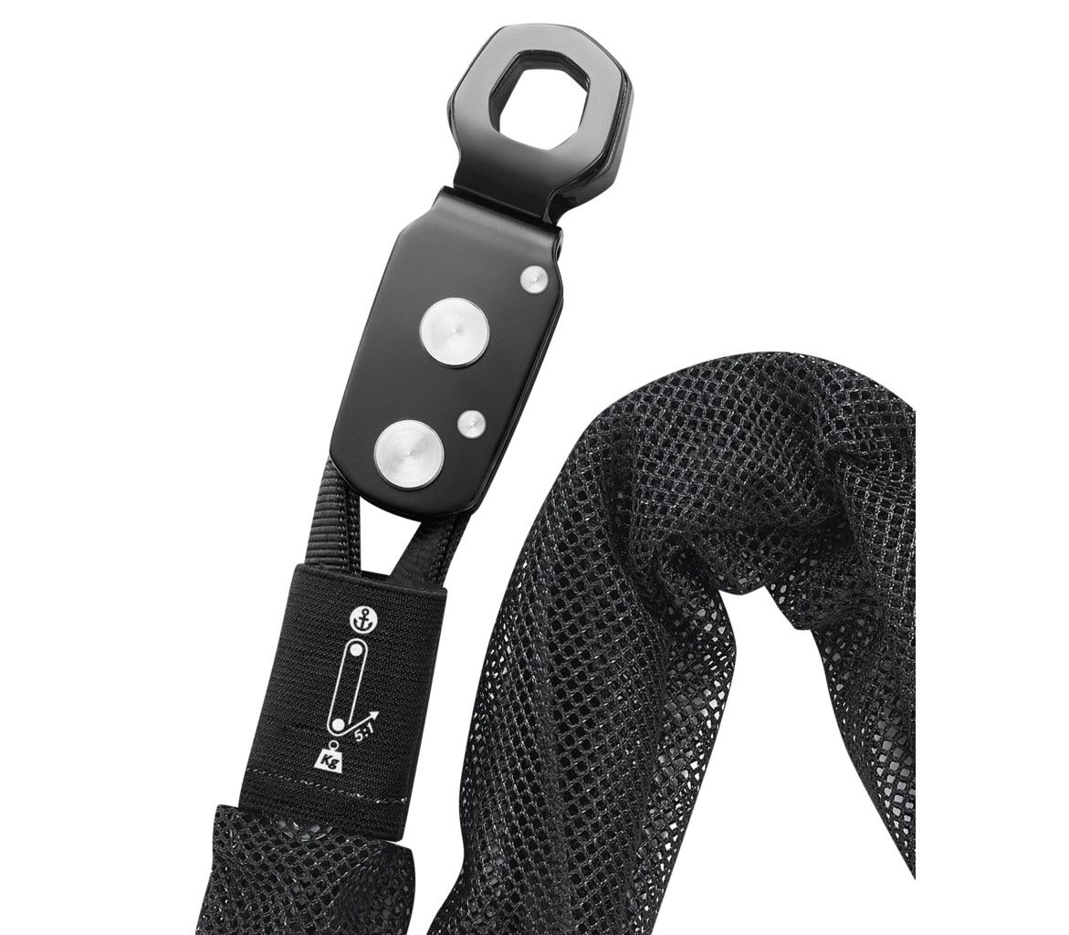 • Мінімальний розмір та вага — завдяки використанню пласкої стропи замість мотузки круглого перерізу. Поліспаст завдовжки 1.5 м важить лише 575 г.