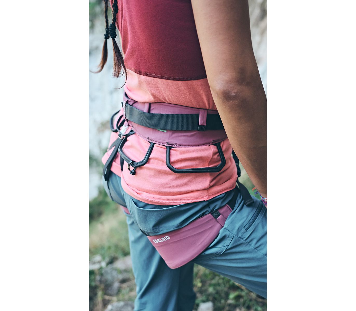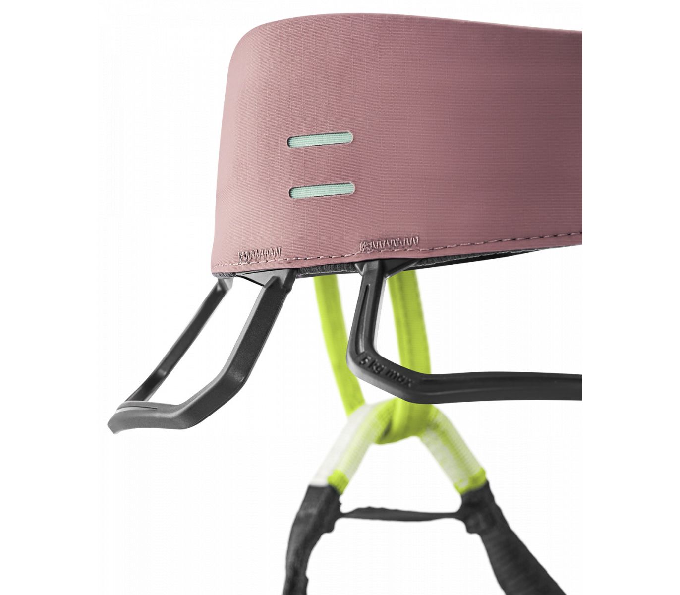 - Полегшена фронтальна зона з суміші Dyneema® та поліаміду. Страхувальне кільце стало мʼякше й легше при аналогічній міцності. А також отримало нову конструкцію kernmantel (серцевина-обплетення), аналогічно до преміум-моделей Edelrid. Мости, в місцях найбільшого тертя, посилено додатковим шаром дайнімівської стропи.