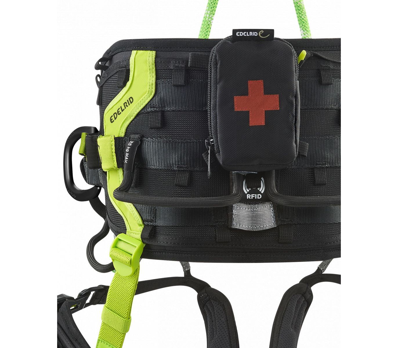 - Вбудований чіп RFID дозволяє записувати і зчитувати дані про використання обвʼязки. Це спрощує контроль за спорядженням, підвищуючи безпеку на виробництві.