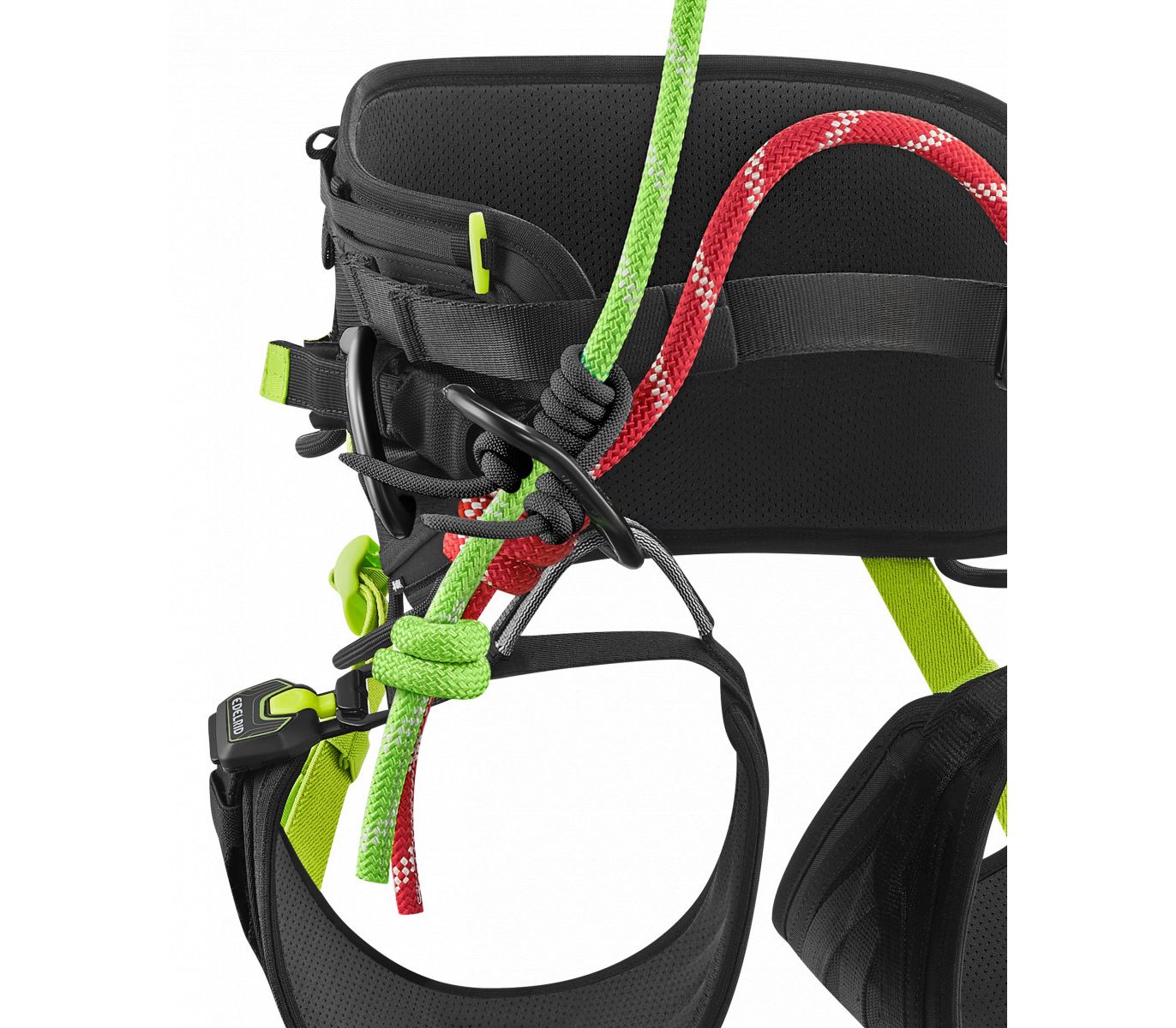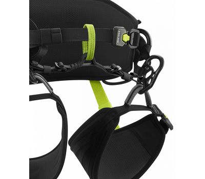 - Тривимірна, анатомічна форма ножних петель і широкий діапазон їх регулювання допомагають щільно припасувати систему. Вантажні стропи на ножних петлях доповнено шаром Dyneema® для захисту від стирання.