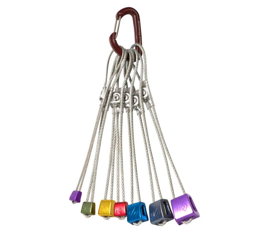 Набор страховочных элементов (размеры с 4-го по 13-й) с прочным тросиком (оцинкованная сталь) и карабином OvalWire . Сечение особой формы позволяет использовать их в трещинах любого типа. Стоппера подвергаются анодной обработке в зависимости от размера, что позволяет с легкостью их идентифицировать; скругленные грани облегчают процесс извлечения.
