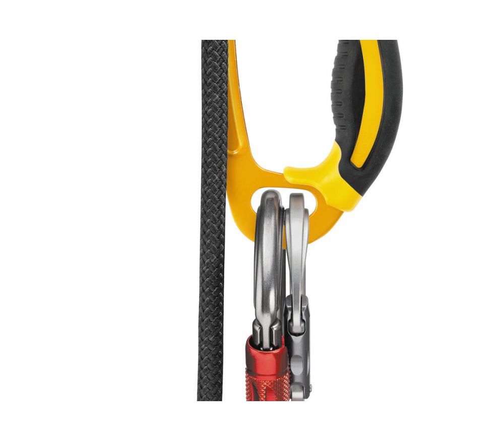 Эргономичная обрезиненная рукоятка и накладка в верхней части обеспечивают надежное удержание зажима как одной, так и двумя руками. Обновленная защелка упрощает работу в перчатках. Большое присоединительное отверстие позволяет вщелкнуть сразу два карабина.