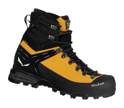 Чоловічі альпіністичні черевики Ortles Ascent Mid Gore-Tex із товстої замшевої шкіри. Дихаюча мембрана Gore-Tex Insulated Comfort відводить вологу та забезпечує чудові повітропроникні властивості взуття, а вбудовані еластичні гетри запобігають потраплянню снігу всередину. Мембрана має додатковий ізоляційний шар. В підсумку це дозволяє вашим ногам бути в теплі та сухості в зимових горах. Система фіксації ноги Salewa 3F зі сталевими тросами забезпечує оптимальну форму для максимального комфорту п’яти, стопи та щиколотки. Устілка, із жорстким нейлоновим скловолокном, яка складається з 3-х елементів Multi Fit Footbed Plus підвищує ефективність та стабільність під час активності. Вона дозволяє підлаштувати взуття під індивідуальні особливості стопи. Підошва Vibram Alpine Guide розроблена спеціально для складних місцевостей за низьких температур. Вона гарантує надійне зчеплення, а дизайн протектора має самоочищувальні виступи. Система захисту щиколотки (APS) з манжетою на п’яті з термоформованого матеріалу створена для комфортних спусків. Взуття сумісне з кішками.