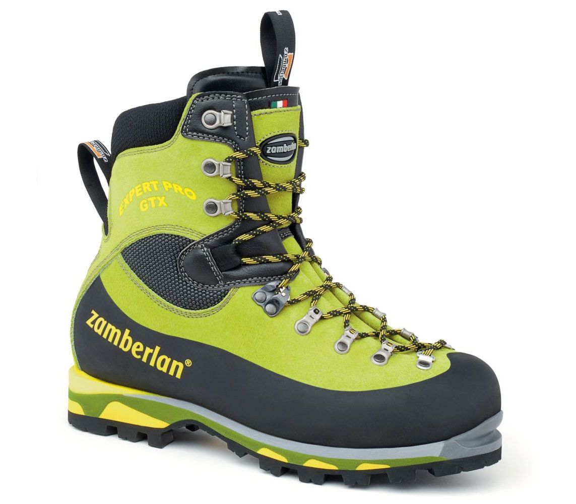 Черевики Zamberlan Expert Pro призначені для високогірного альпінізму, а також для пересування по льодовику та вихід на гірські маршрути підвищеної складності. Вони виготовлені із суцільної шкіри Hydrobloc Perwanger зі вставками із матеріалів Microfiber та Superfabric. Регульований та м'який внутрішній передній клапан дозволяє максимально комфортно припасувати черевик до ноги.