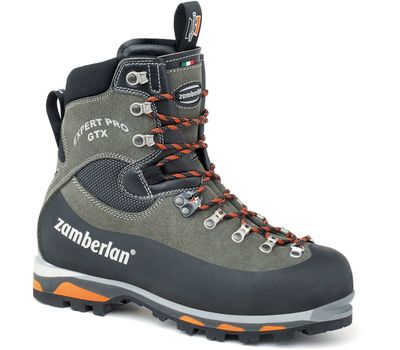 Черевики Zamberlan Expert Pro призначені для високогірного альпінізму, а також для пересування по льодовику та вихід на гірські маршрути підвищеної складності. Вони виготовлені із суцільної шкіри Hydrobloc Perwanger зі вставками із матеріалів Microfiber та Superfabric. Регульований та м'який внутрішній передній клапан дозволяє максимально комфортно припасувати черевик до ноги.
