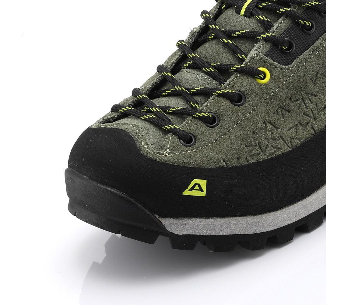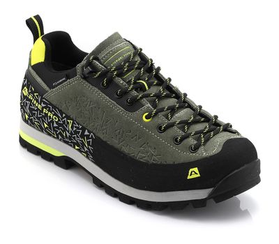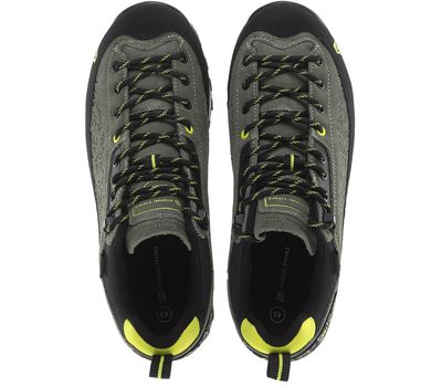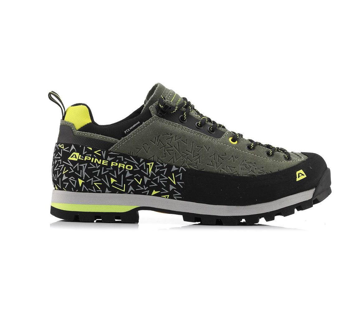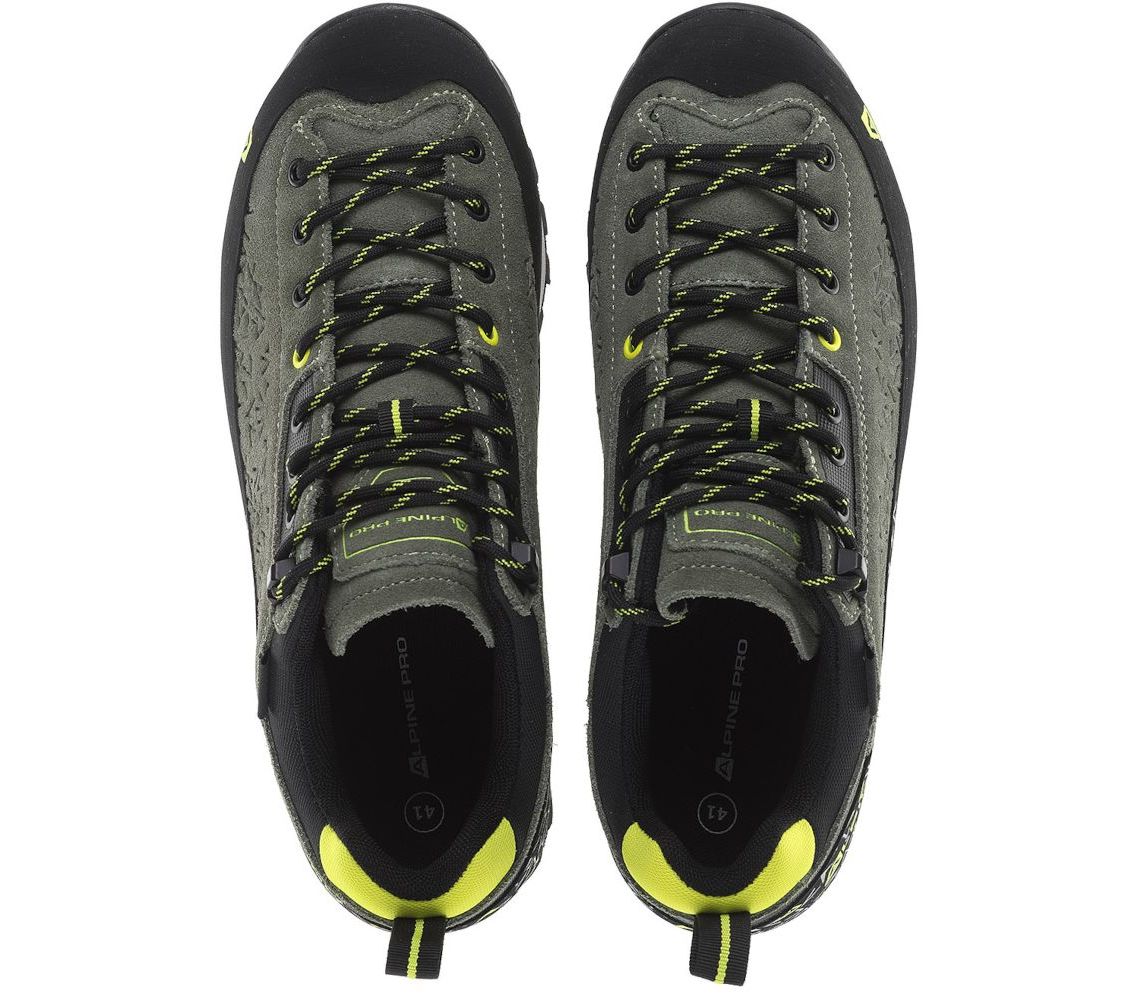 Alpine Pro Wasde - чоловічі трекінгові кросівки. Верх зроблений з міксу шкіри та текстилю, носок і боки взуття добре прогумовані для захисту від гілок і каміння. Шнурівка досить глибока, щоб припасувати кросівки під різну стопу.