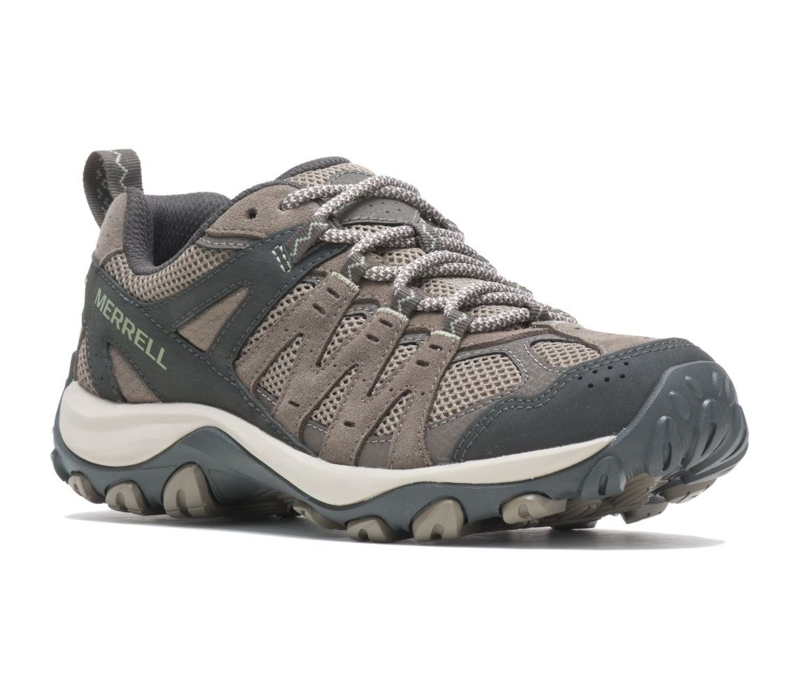 Стильні та функціональні  жіночі кросівки Merrell Accentor 3 . Взуття цього бренду полюбляє сам Бер Гріллз. Де він у своїх Merrell тільки не бував! Чіпка підошва дозволяє пересуватися по вологих стежках, а завдяки сіточці вони швидко сохнуть та не парять ногу спекотним літом. У них можна хоч у місто, хоч у трекінг Карпатами – нема різниці. Виготовлені із замші та сітки на чіпкій гумовій підошві, вони обіймають вашу ногу, забезпечуючи комфорт протягом усього мандрівного дня.
