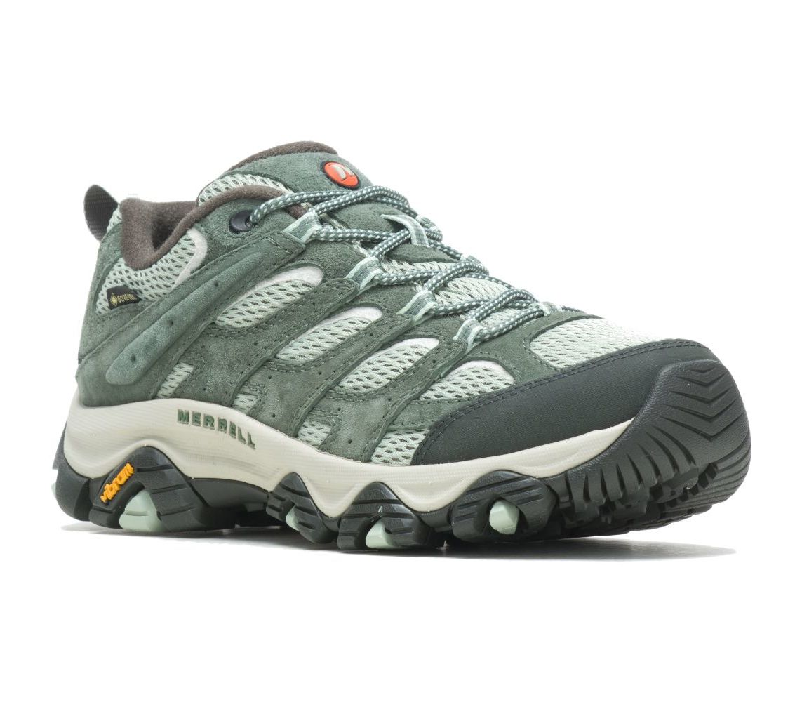 Оновлена версія Moab 3 GTX частково виготовлена з перероблених матеріалів. Верхня частина виконана із замші зі свинячої шкіри в поєднанні з матеріалом Mesh, підкладка з переробленої сітки. Комфорту сприяє традиційна шнурівка з повністю перероблених матеріалів. Вшитий м'який язичок запобігає проникненню бруду. Формований носок захищає пальці та запобігає ударам.