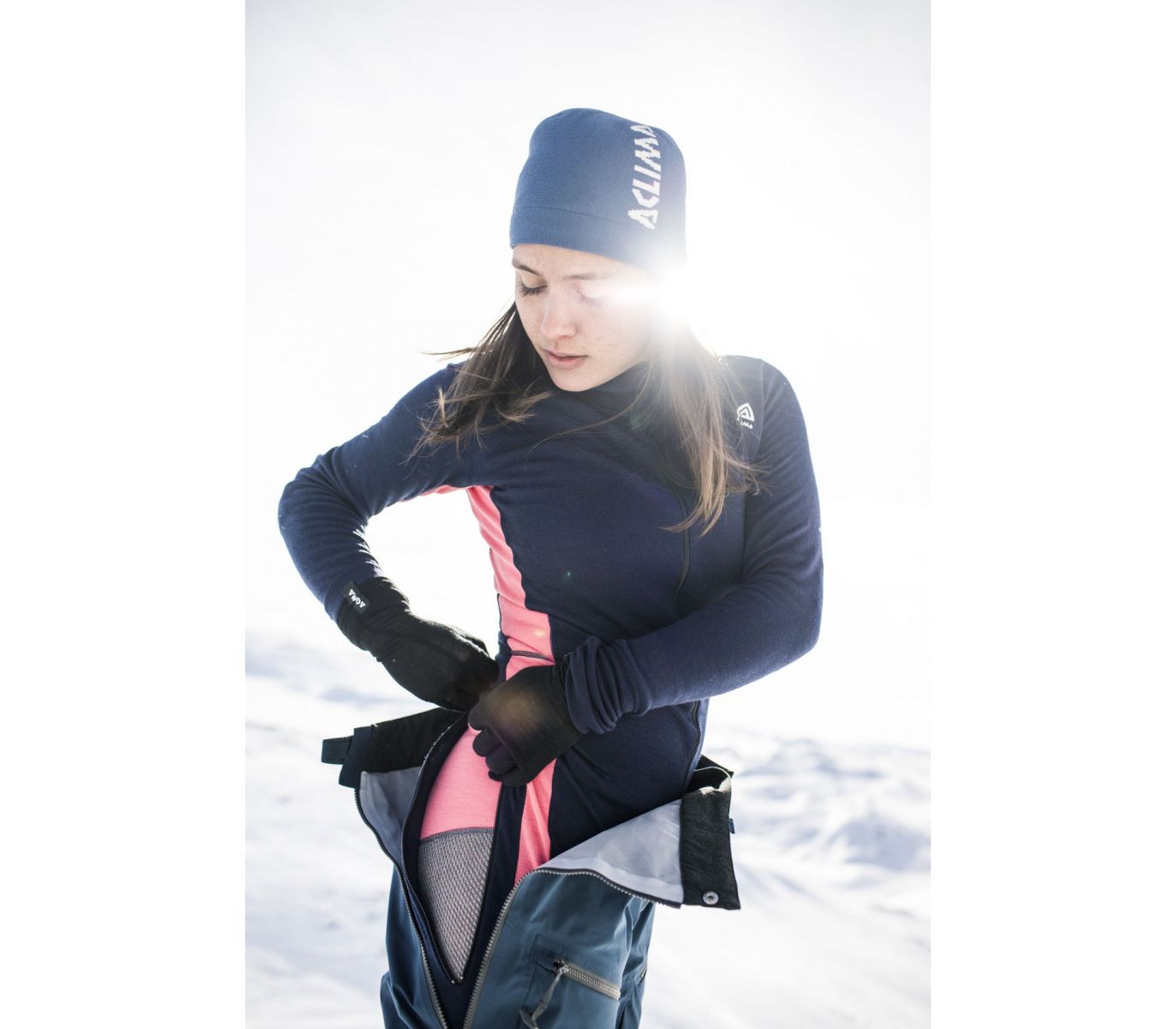 Підкладка з функціональної вовняної сітки Aclima WoolNet створює мінімум точок дотикання з тілом. Під час руху зайве тепло й волога інтенсивно випаровуються крізь комірки, а тканина залишається сухою. Коли рух припиняється і тіло охолоджується, у комірках затримується нагріте тілом повітря. Верхній шар тканини добре відводить вологу назовні і утеплює, коли активність низька.