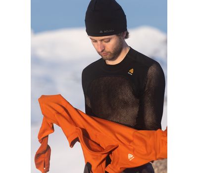 Підкладка з функціональної вовняної сітки Aclima WoolNet створює мінімум точок дотикання з тілом. Під час руху зайве тепло й волога інтенсивно випаровуються крізь комірки, а тканина залишається сухою. Коли рух припиняється і тіло охолоджується, у комірках затримується нагріте тілом повітря. Верхній шар тканини добре відводить вологу назовні і утеплює, коли активність низька.