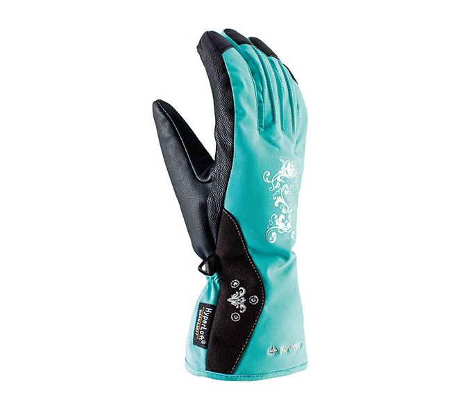 Женские горнолыжные перчатки со светоотражающим принтом и стразами. Благодаря элегантному дизайну, будут уместны как на горнолыжном склоне, так и для прогулок по городу.