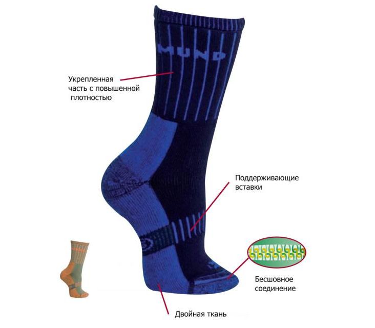 - Дополнительное утолщение для стопы, обеспечиваемое двойным переплетением