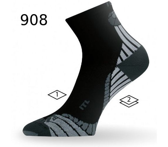 Функціональні туристичні шкарпетки від Lasting. Ідеально для трекінгу весною чи влітку. Виготовлені із еластичних, штучних волокон. Шкарпетки відмінно прилягають до ноги і запобігають неприємному сповзанню. Області стопи, пальців і п'яти, які піддаються великому навантаженню, посилені подвійним шаром матеріалу для зносостійкості. Розробники використали тонкий шов типу Россо, який не натирає. Lasting ITL здатні відводити вологу і мають антибактеріальні властивості.