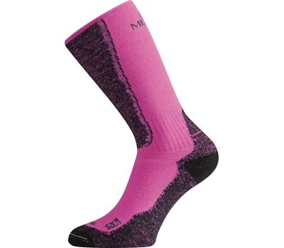 Шерстяні шкарпетки від бренду Lasting. Виготовлені із суміші вовни Merino та штучних волокон. Двошарова махрова в`язка гарантує теплоізоляцію та дозволяє носити шкарпетки у зимовий період. Lasting WSM здатні відводити вологу, а також мають антибактеріальні властивості. Є захищені зони (області стопи й гомілки), які посилені тришаровою махровою в`язкою. Розробники використали тонкий шов типу Россо, який не натирає. Шкарпетки довші за стандартні моделі Lasting - комфортне використання з трекінговими черевиками.