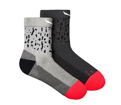 Salewa Salam QRT Wms - жіночі дихаючі та міцні шкарпетки з дизайном саламандри. Відчуйте себе комфортно під час походів: у шкарпетках шкіра дихатиме і буде захищена від появи мозолів. У складі – мериносова вовна. Завдяки відсутності швів і захисту п'яти шкарпетки дуже зручні та практичні під час активності.