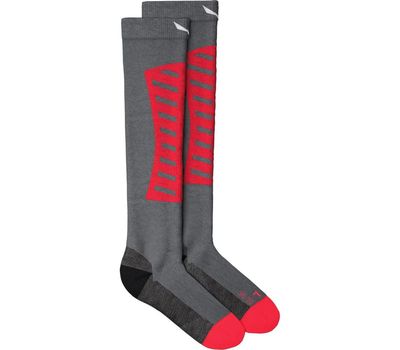 Високі жіночі шкарпетки Salewa Sella Dryback AM – це теплі, дихаючі та міцні шкарпетки довжиною до коліна, призначені для альпінізму. Вони мають широку посадку у литковому відділі, що додасть зручності альпіністам, у яких м’язи на ногах об’ємні через часті тренування. Завдяки природним властивостям мериносової вовни, яка входить до складу тканини, шкарпетки добре відводять вологу і швидко сохнуть, а отже добре регулюють температуру тіла. Вони також мають антибактеріальні властивості, що є перевагою для будь-яких шкарпеток, оскільки вони стають більш стійкими до неприємних запахів.