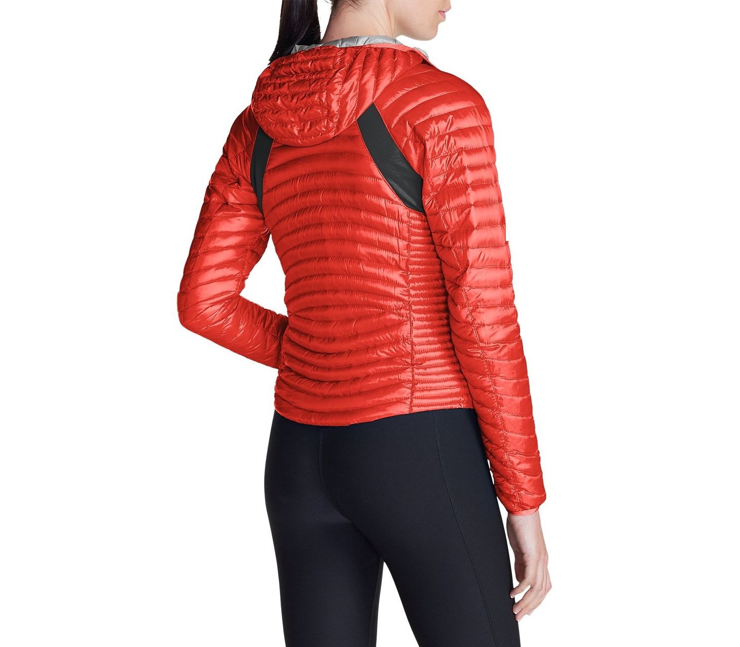 Малый вес куртки говорит о высоком качестве ее наполнителя. Натуральный сверхлегкий пух с заполняющей способностью 800 сохраняет тепло до -20С, обработан водоотталкивающей пропиткой. Верх - ветрозащитный полиэстер рип-стоп. Куртка плотно прилегает к телу, не стесняя движений.