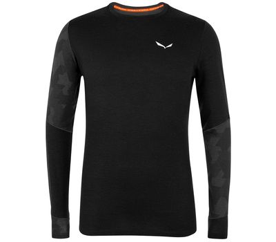 Salewa Cristallo L/S Mns - чоловіча термофутболка з довгим рукавом. У її складі є вовна меринос, ідеально для інтенсивного трекінгу та активного відпочинку. Термофутболка чудово зберігає тепло, добре дихає і не вбирає неприємні запахи, що дуже важливо під час тривалих походів в гори.