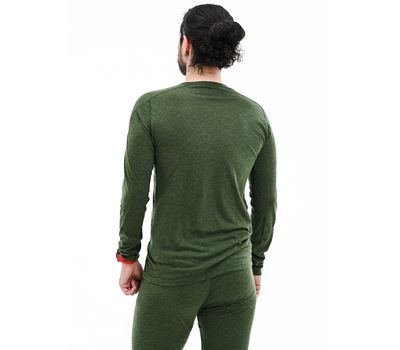 Чоловіча термофутболка приталеного анатомічного крою з довгим рукавом. У її складі є вовна меринос (15%), яка відома своїми природними зігріваючими властивостями. Завдяки пропорції вовни та поліестру (15/85), цю річ комфортно використовувати у подорожах протягом декількох днів та тривалих походах, адже вона стійкіша до утворення запаху і швидше сохне.