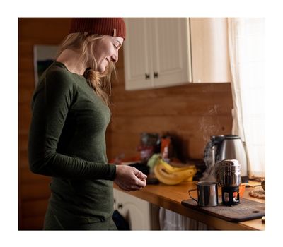 Жіноча термофутболка приталеного анатомічного крою з довгим рукавом. У її складі є вовна меринос (15%), яка відома своїми природними зігріваючими властивостями. Завдяки пропорції вовни та поліестру (15/85), цю річ комфортно використовувати у подорожах протягом декількох днів та тривалих походах, адже вона стійкіша до утворення запаху і швидше сохне.