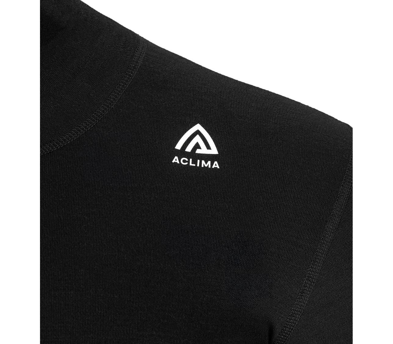 Тепла чоловіча термокофта для зими та міжсезоння від норвезького бренду Aclima. Складається з чистої вовни мериноса, щільність тканини — 200 г/кв.м. Використовується як перший, натільний шар термобілизни, має обтислу посадку (slim fit). Висока горловина захищає шию від холоду.