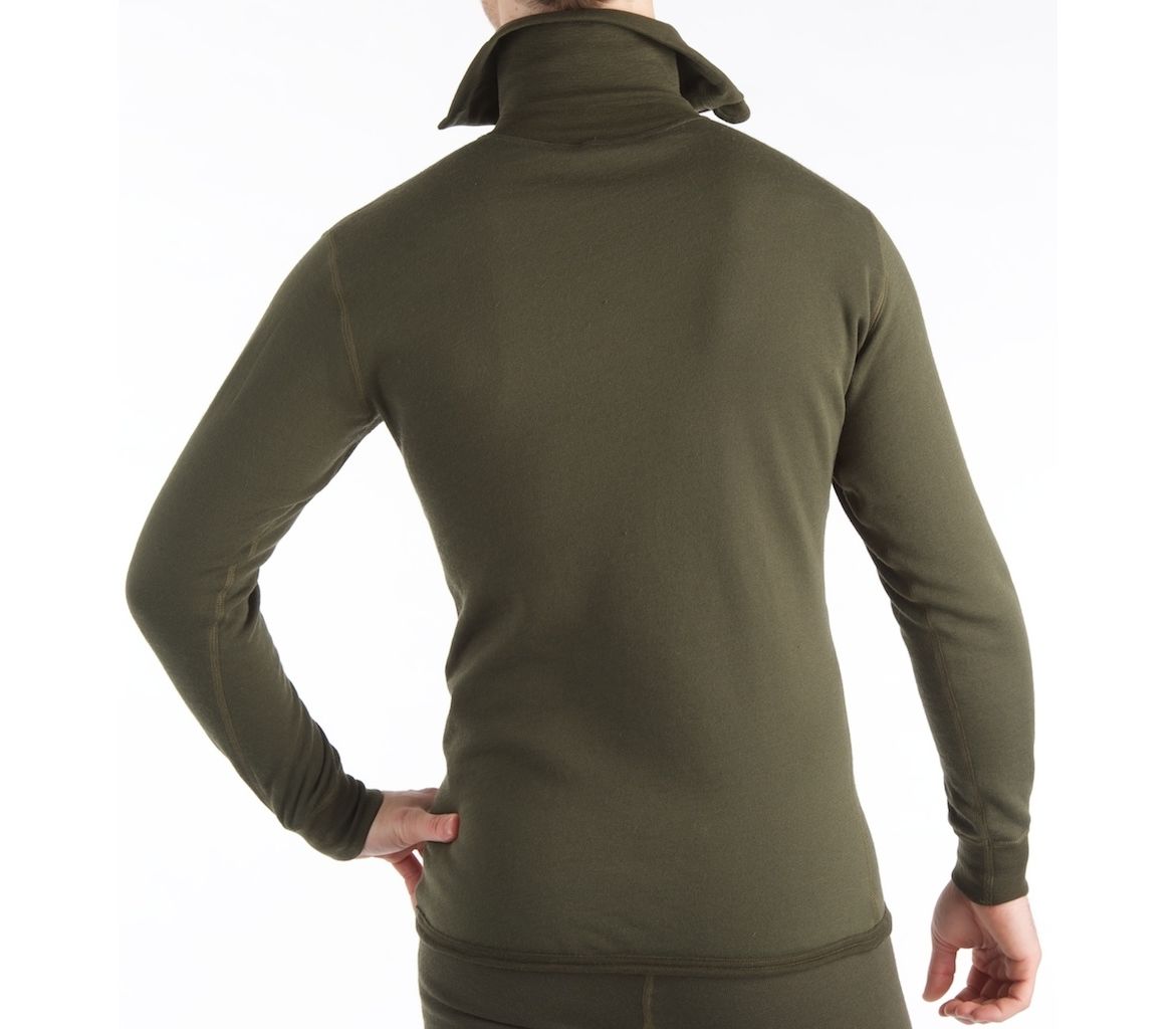 Очень теплая зимняя термокофта с высоким воротником от норвежского бренда Aclima. Изготовлена из шерсти мериноса с добавлением синтетических волокон, плотность ткани — 230 г/кв.м. Благодаря мягкой махровой изнанке греет лучше, чем самое плотное термобелье обычной вязки. Имеет стандартную посадку и используется как первый, нательный слой в очень холодную погоду.
