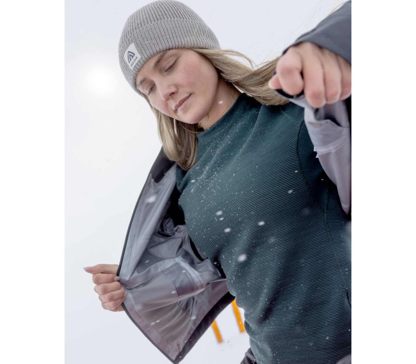 • Фірмове вʼязання StreamWool — мʼякий двосторонній трикотаж із функціональними повітряними каналами. Гладким боком до тіла тканина дає стандартну терморегуляцію. Перевернувши одяг рельєфом до тіла, ви отримуєте додаткове утеплення завдяки накопиченню повітря у каналах.