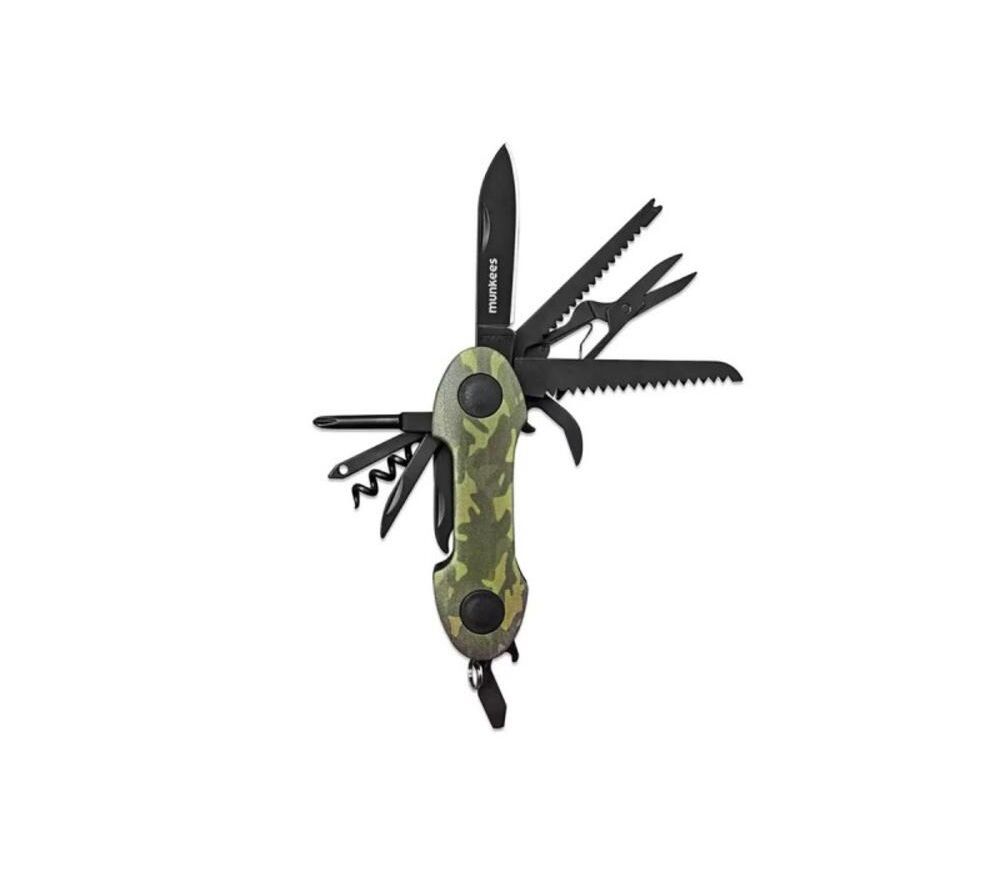 Многофункциональный брелок-мультиинструмент Munkees Pocket Knife Camo 15 функций в камуфляжной расцветке. Отличается стильным внешним видом, компактными размерами и малым весом. Мультиинструмент включает в себя 15 функций.