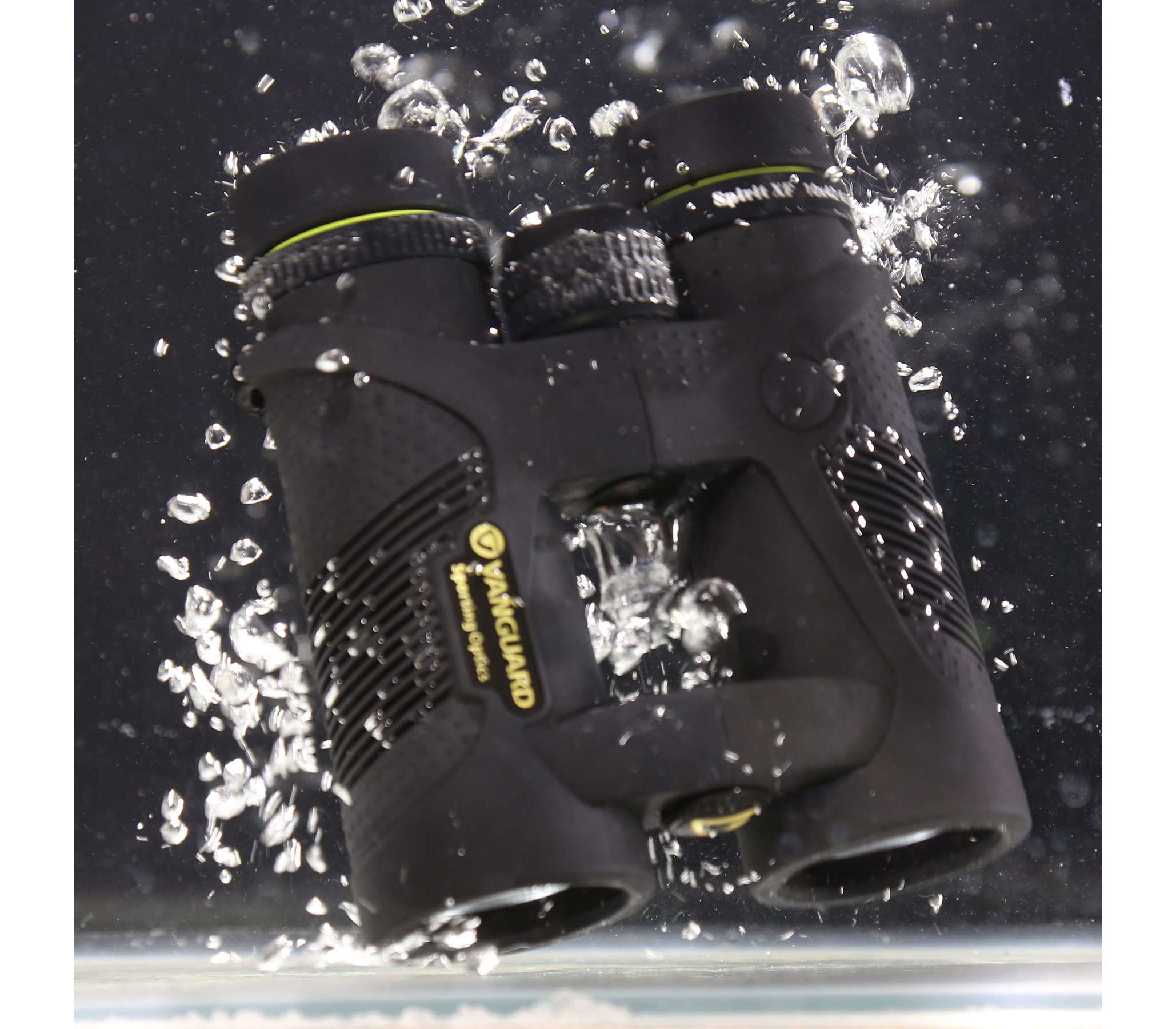 Waterproof & fogproof. Данный бинокль имеет водозащиту по классу IPX7 и защиту от образования внутреннего конденсата. Корпус герметизирован каучуковым уплотнительным O-кольцом, что позволяет биноклю находиться до 30 минут под водой на глубине 1 метр, не пропуская влагу внутрь. Из внутренних полостей корпуса воздух и пары воды вытеснены азотом N2, который не образовывает конденсата на внутренних поверхностях оптики при резком перепаде температур.