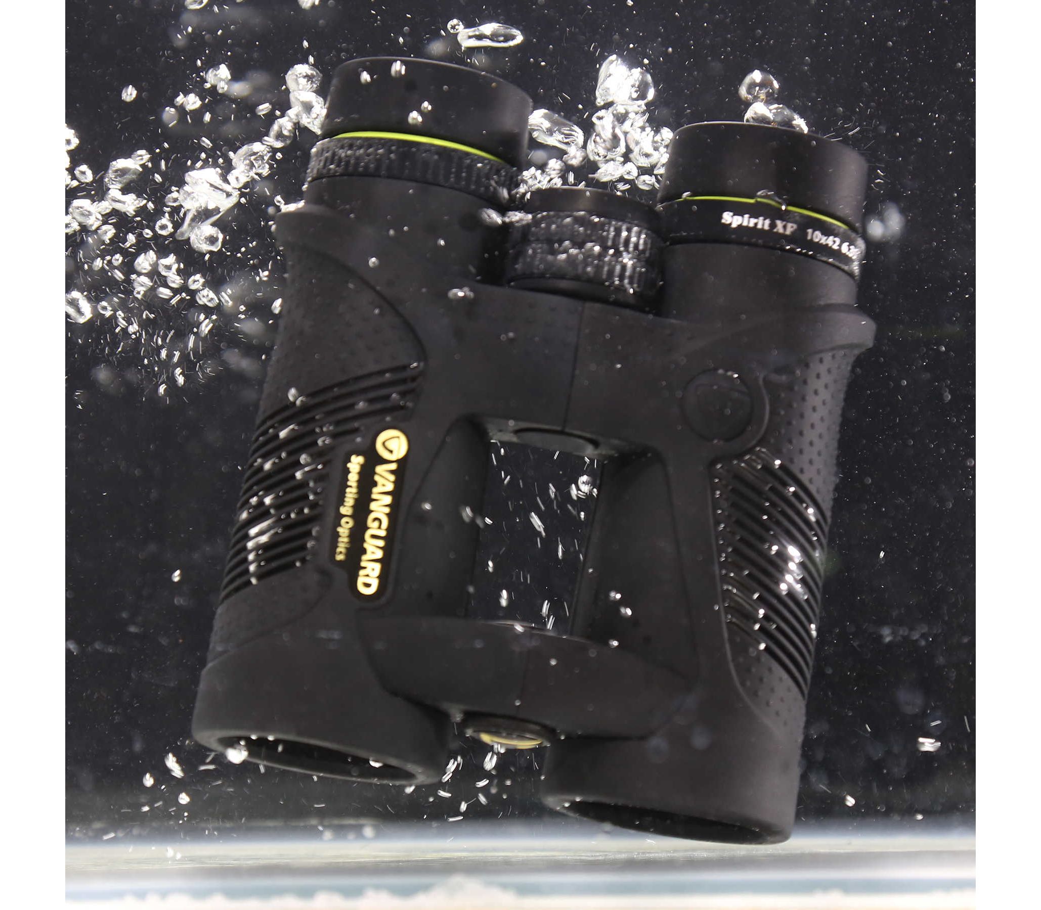 Waterproof & fogproof. Данный бинокль имеет водозащиту по классу IPX7 и защиту от образования внутреннего конденсата. Корпус герметизирован каучуковым уплотнительным O-кольцом, что позволяет биноклю находиться до 30 минут под водой на глубине 1 метр, не пропуская влагу внутрь. Из внутренних полостей корпуса воздух и пары воды вытеснены азотом N2, который не образовывает конденсата на внутренних поверхностях оптики при резком перепаде температур.