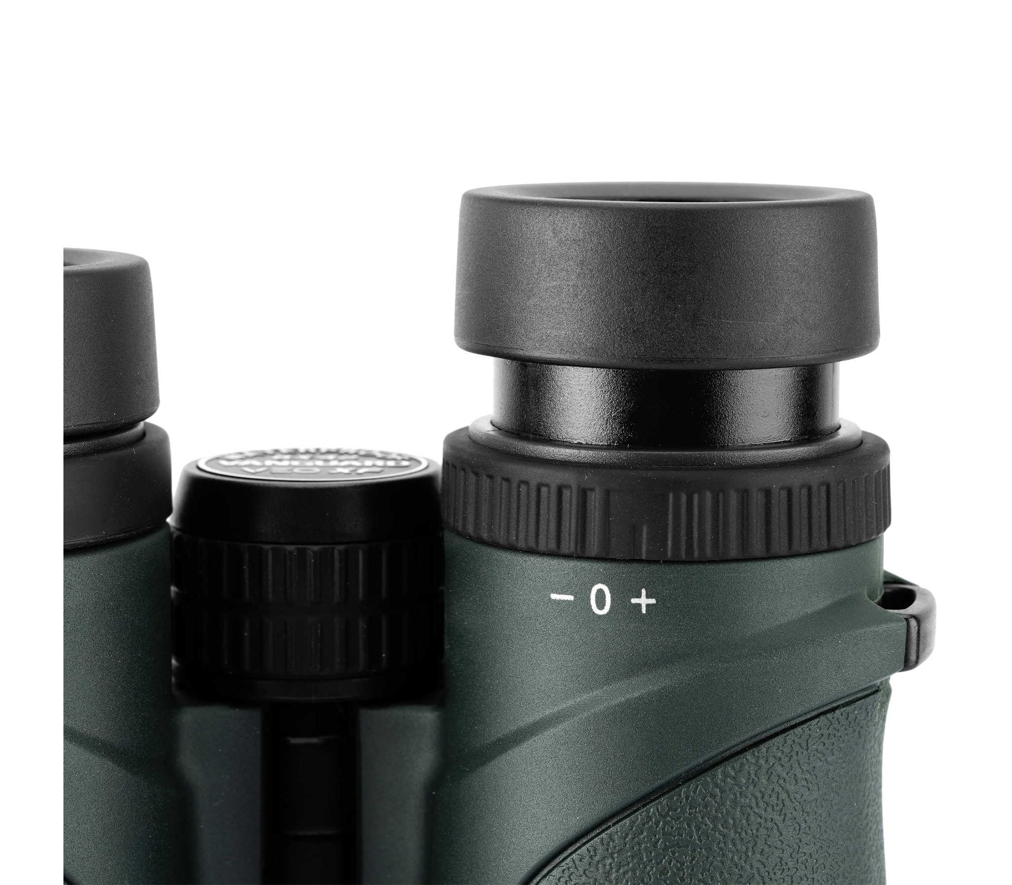 Waterproof & fogproof. Данный бинокль имеет водозащиту по классу IPX7 и защиту от образования внутреннего конденсата. Корпус герметизирован каучуковым уплотнительным O-кольцом, что позволяет биноклю находиться до 30 минут под водой на глубине 1 метр, не пропуская влагу внутрь. Из внутренних полостей корпуса воздух и пары воды вытеснены азотом N2, который не образовывает конденсата на внутренних поверхностях оптики при резком перепаде температур.