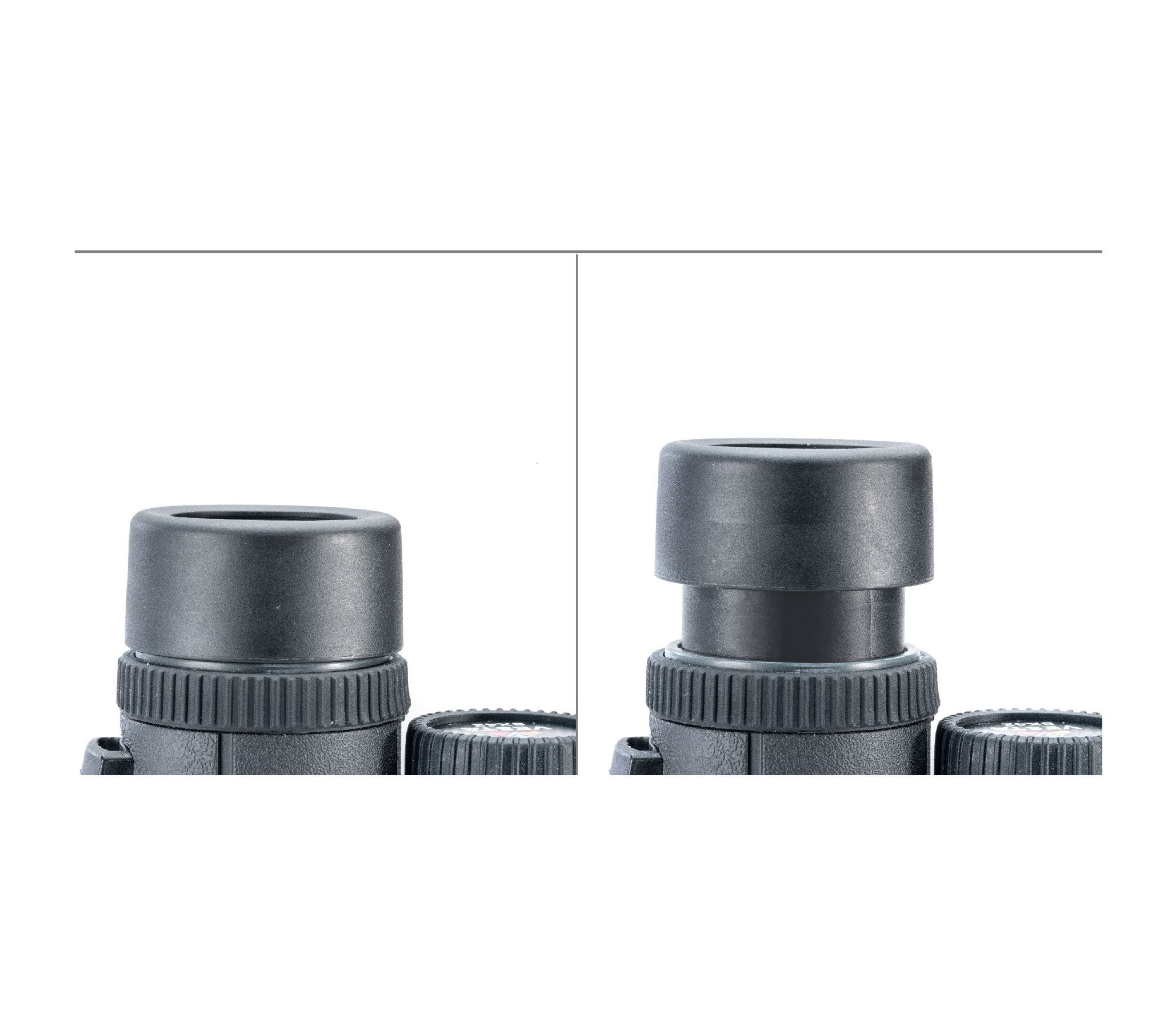 2 Stage Eyecups. Правильно сконструированные оправы окуляров не только повышают комфорт при длительных наблюдениях, но, в первую очередь, позволяют с одинаковым удобством использовать бинокль пользователям с разным анатомическим строением глаз, а также пользователям в очках. В данном бинокле используются выдвижные оправы окуляров типа Twist-Up, имеющие 2 уровня фиксации.