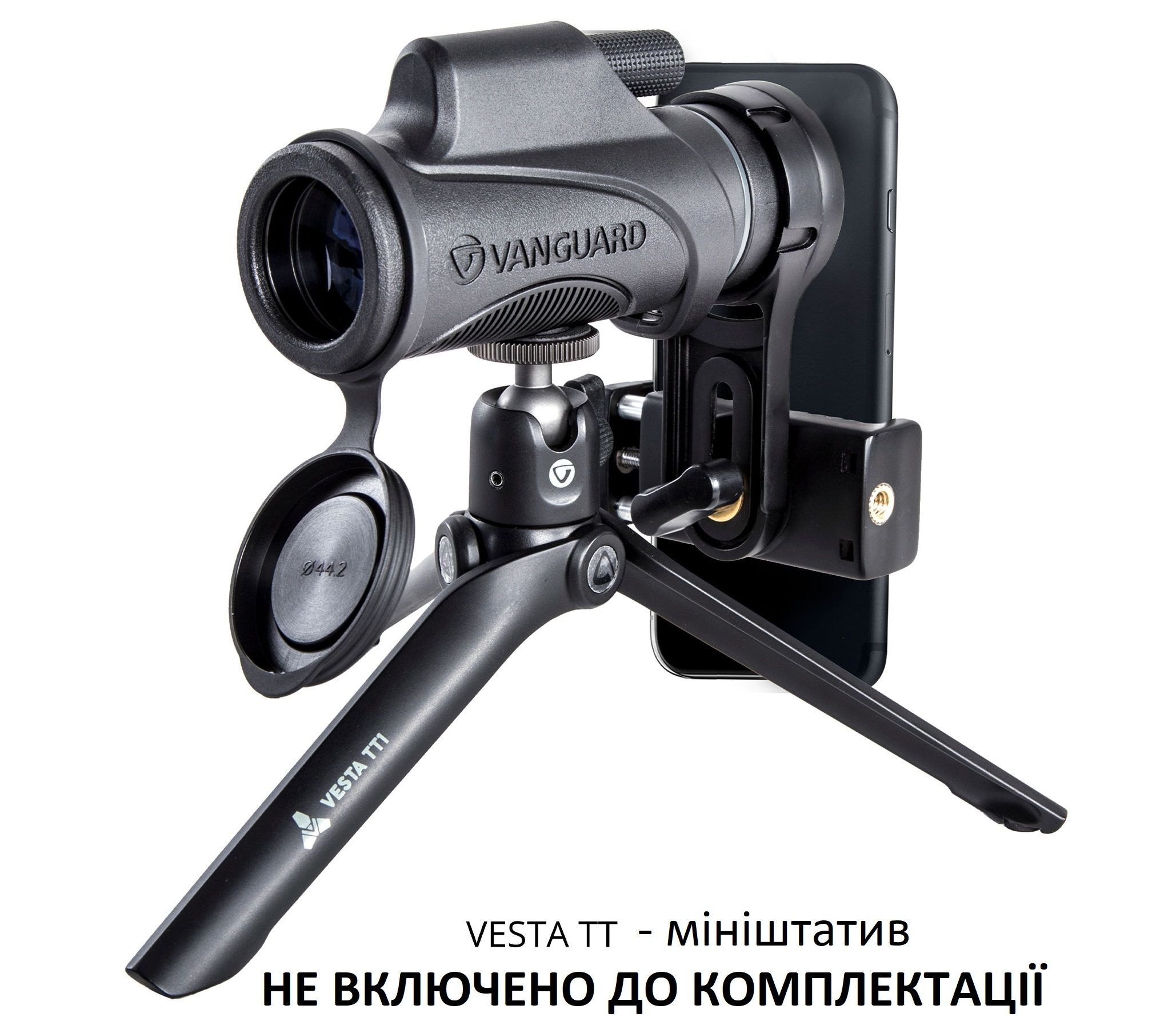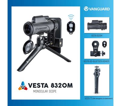 Невозможно предсказать, когда произойдет что-либо стоящее Вашего внимания и быть готовым в каждый момент к наблюдениям или съемке происходящего. Однако можно вооружиться компактным оптическим прибором - монокуляром Vanguard Vesta 8x32 WP. Данная модель имеет объектив с многослойным просветлением и большим диаметром, чтоб получить достаточно яркое и четкое изображение. Качество мультипросветленной оптики таково, что позволяет использовать монокуляр Vanguard Vesta 8x32 WP в качестве объектива для смартфонов, наблюдать происходящее на экране смартфона и получать четкие снимки удаленных объектов в хорошем разрешении с 8-кратным оптическим увеличением. Специально для этих задач монокуляр комплектуется адаптером для смартфона, пультом дистанционного управления камерой смартфона с интерфейсом Bluetouth, а также предусмотрена возможность установки монокуляра на штатив.