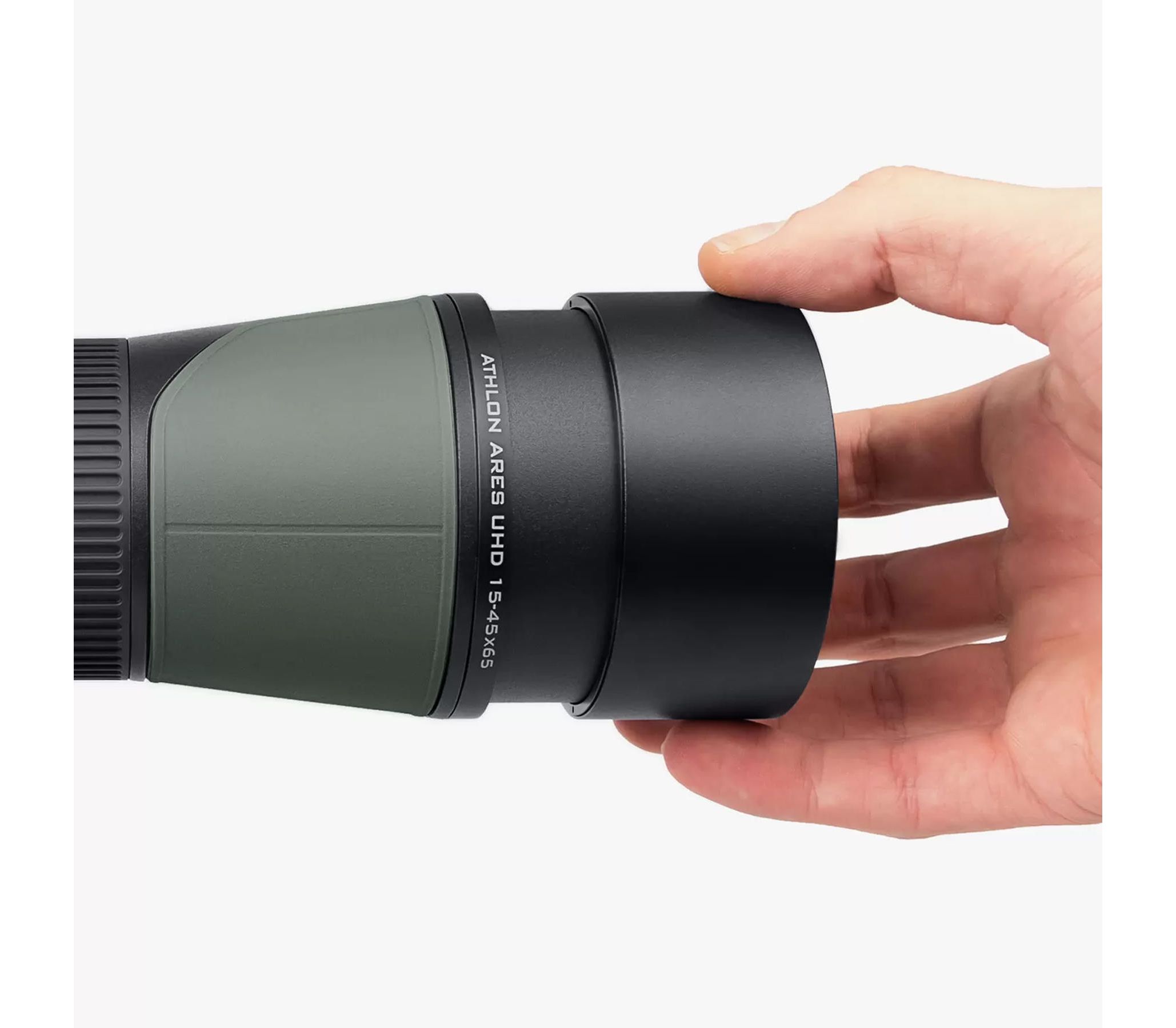 При высокой кратности и большом приближении качество и геометрия оптических элементов, а также эргономика приобретают гораздо большее значение. Подзорная труба Athlon Ares G2 UHD 15-45x65/45 имеет увеличенный по сравнению со стандартом диаметр объектива, большой диаметр окуляра, что обеспечивает как значительную светосилу, так и более высокий комфорт при длительных наблюдениях. Большой диаметр спирального фокусера и кольца трансфокатора, а также их плавное вращение без малейших люфтов позволяют быстро и точно настроить четкость изображения и увеличения, не нарушая стабильность передачи изображения во время наблюдений.
