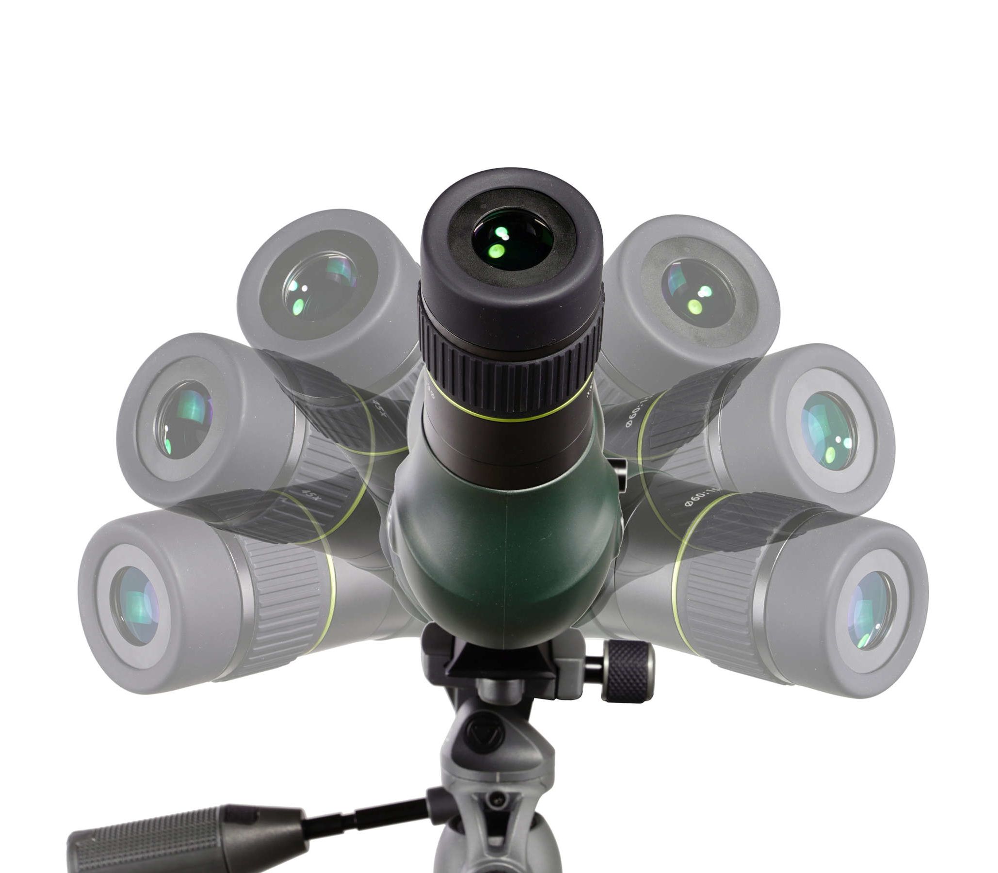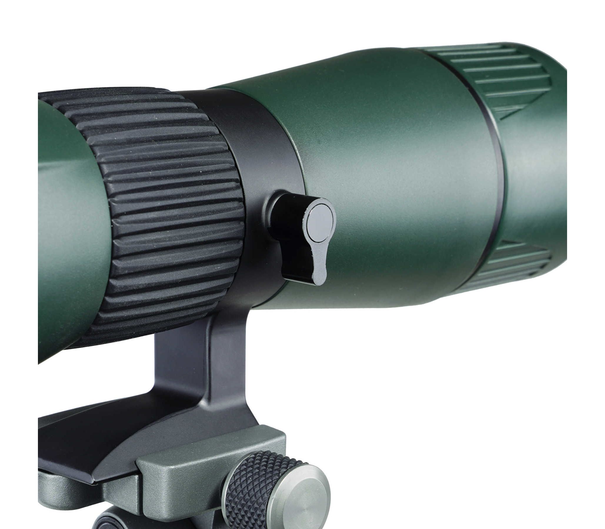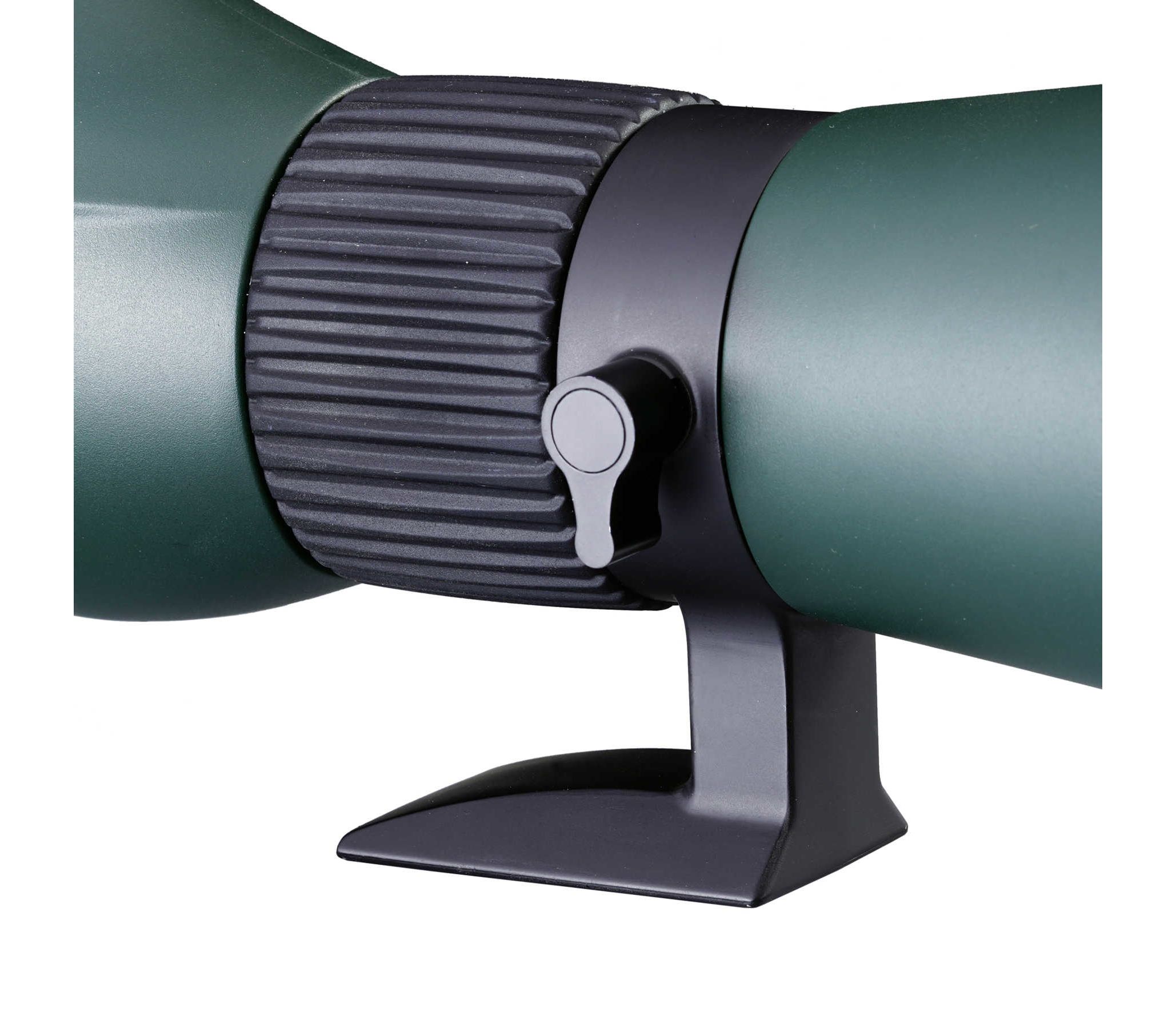 Tripod mountable. В редких случаях подзорные трубы используются для наблюдения без штатива. Как правило это трубы с прямым окулярным узлом. Большие увеличения, длительные наблюдения, съемка на камеру или смартфон с помощью трубы, а в особенности окулярный узел под углом 45º, требуют стабильного положения трубы. Данная модель имеет хомут с креплением на штатив со стандартной резьбой 1/4 - 20 UNC. Возможно использование штативов без быстросъемной планки. Крепление совместимо со стандартом Arca-Swiss.