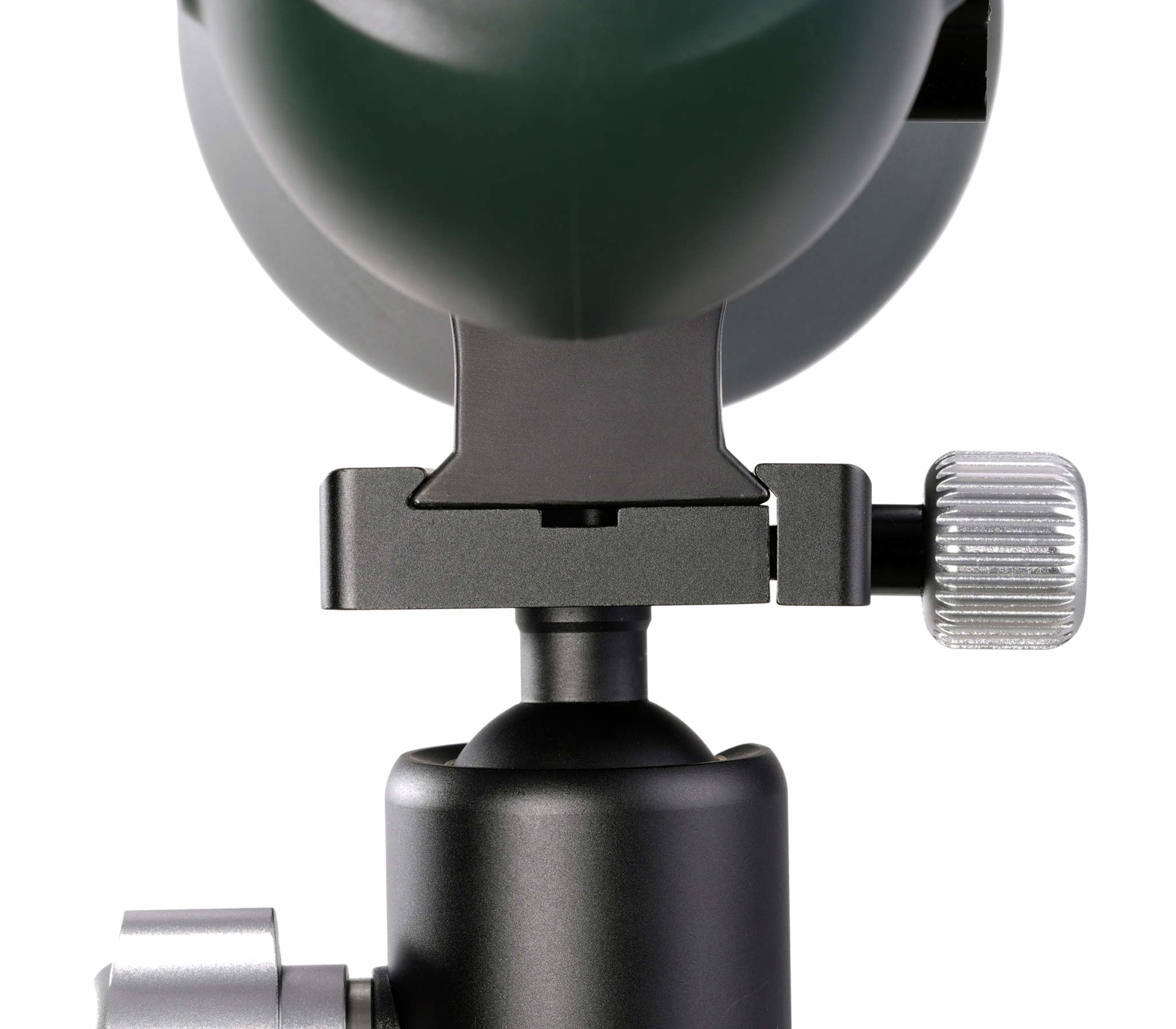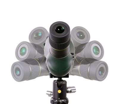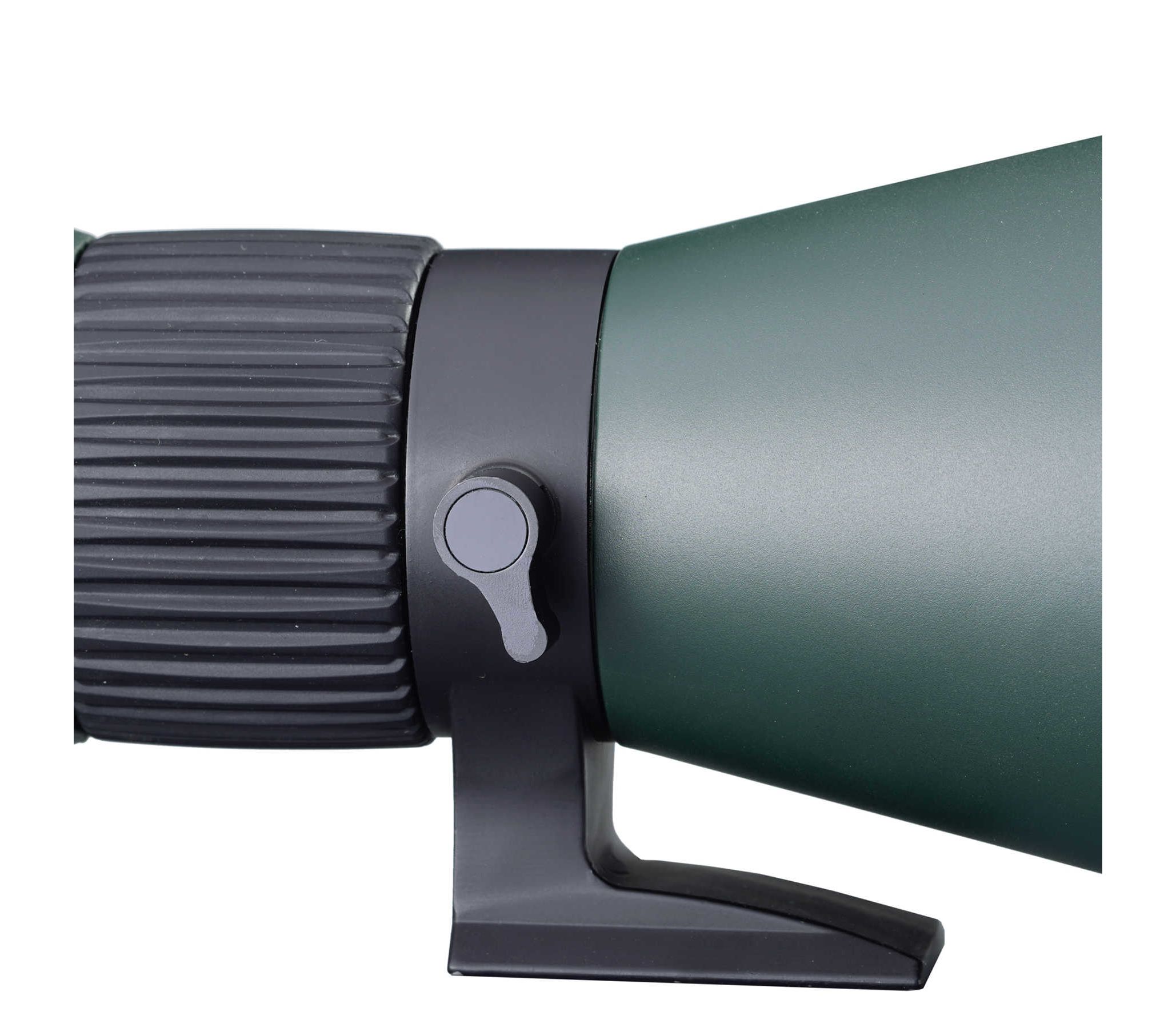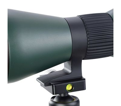 Tripod mountable. В редких случаях подзорные трубы используются для наблюдения без штатива. Как правило это трубы с прямым окулярным узлом. Большие увеличения, длительные наблюдения, съемка на камеру или смартфон с помощью трубы, а в особенности окулярный узел под углом 45º, требуют стабильного положения трубы. Данная модель имеет хомут с креплением на штатив со стандартной резьбой 1/4 - 20 UNC. Возможно использование штативов без быстросъемной планки. Крепление совместимо со стандартом Arca-Swiss.