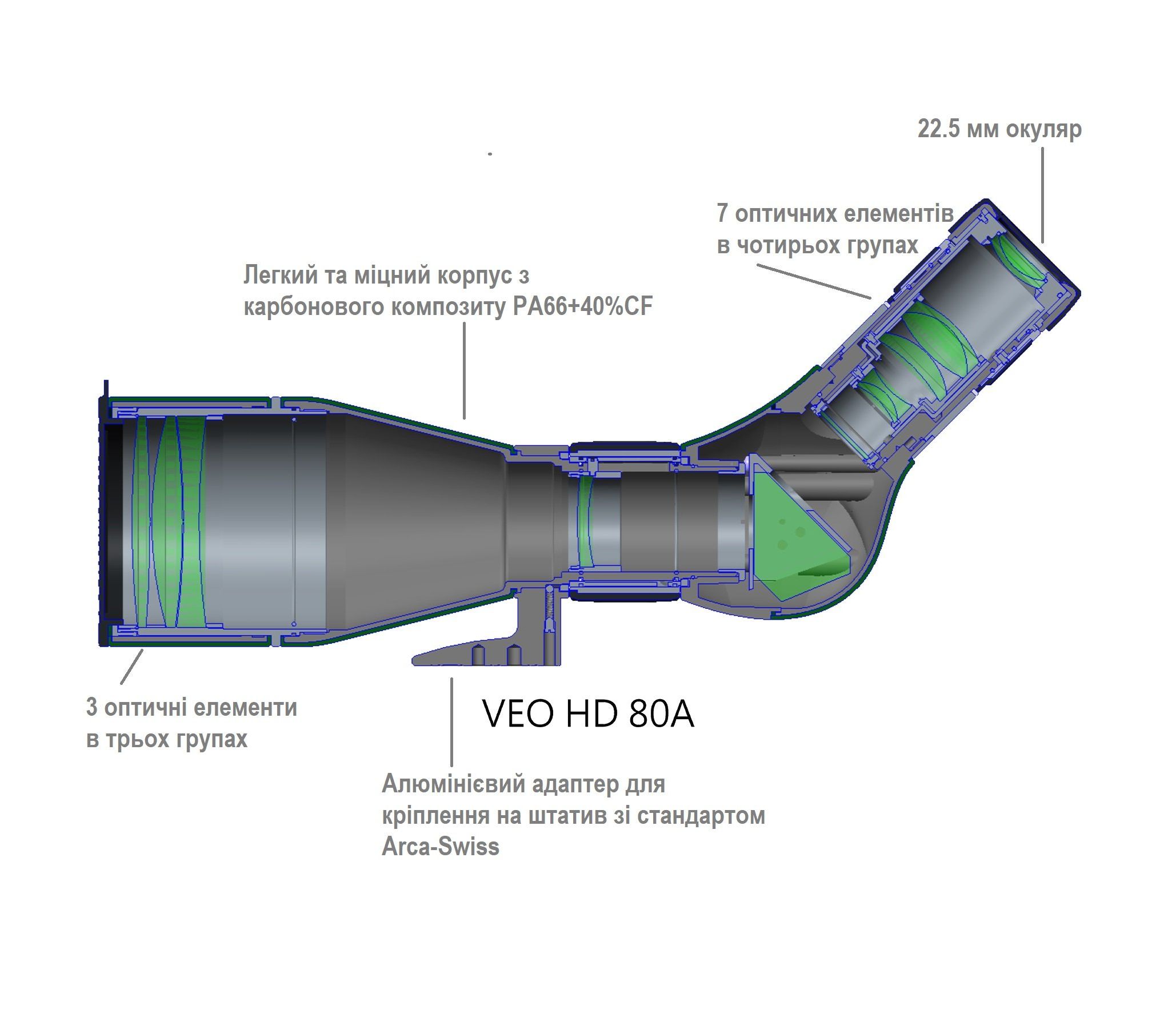 Підзорна труба Vanguard VEO HD 80A 20-60x80/45 WP (VEO HD 80A)