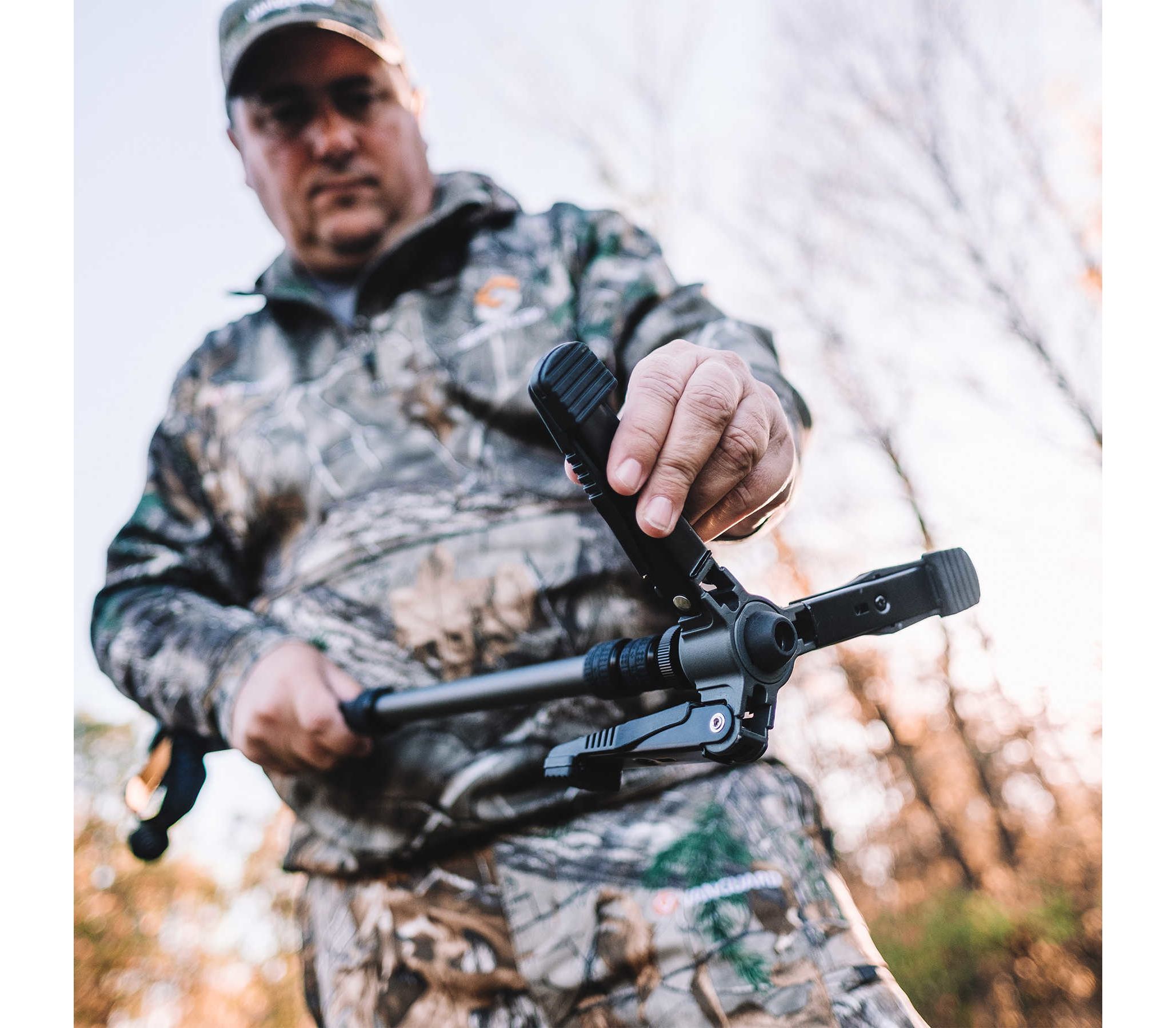 Иногда охотнику нужно больше надежности и стойкости, чем может предложить традиционный монопод, но не всегда есть возможность носить с собой, либо установить полноценный бипод или трипод. И это именно тот случай, когда моноподы Vanguard VEO 2 проявят себя наилучшим образом. Благодаря системе опоры Tri-Feet эти моноподы свободно без поддержки стоят в вертикальном положении, требуя минимум места для установки, выдерживают значительные нагрузки и позволяют вести прицельную стрельбу под разными углами и с разной высоты.