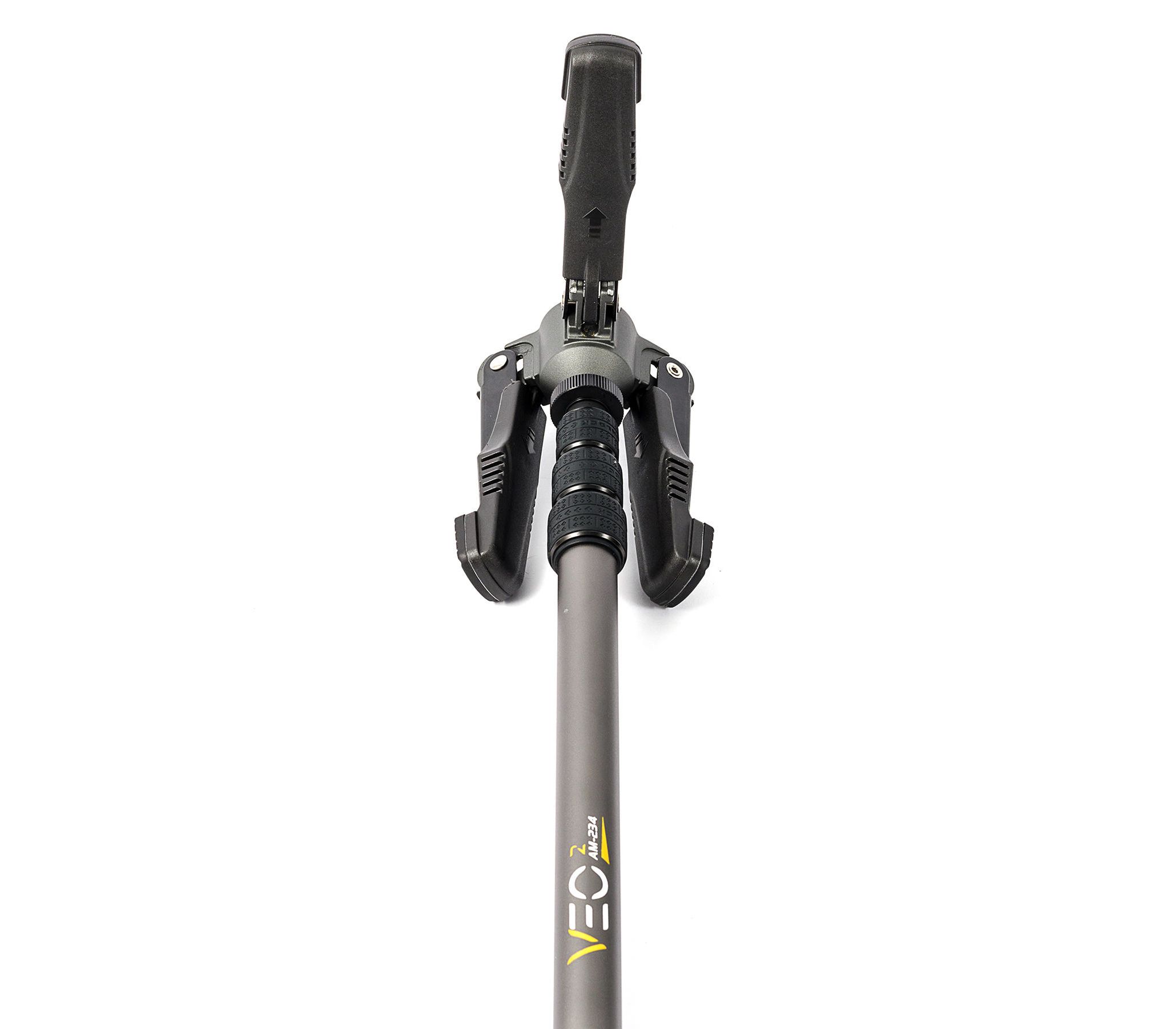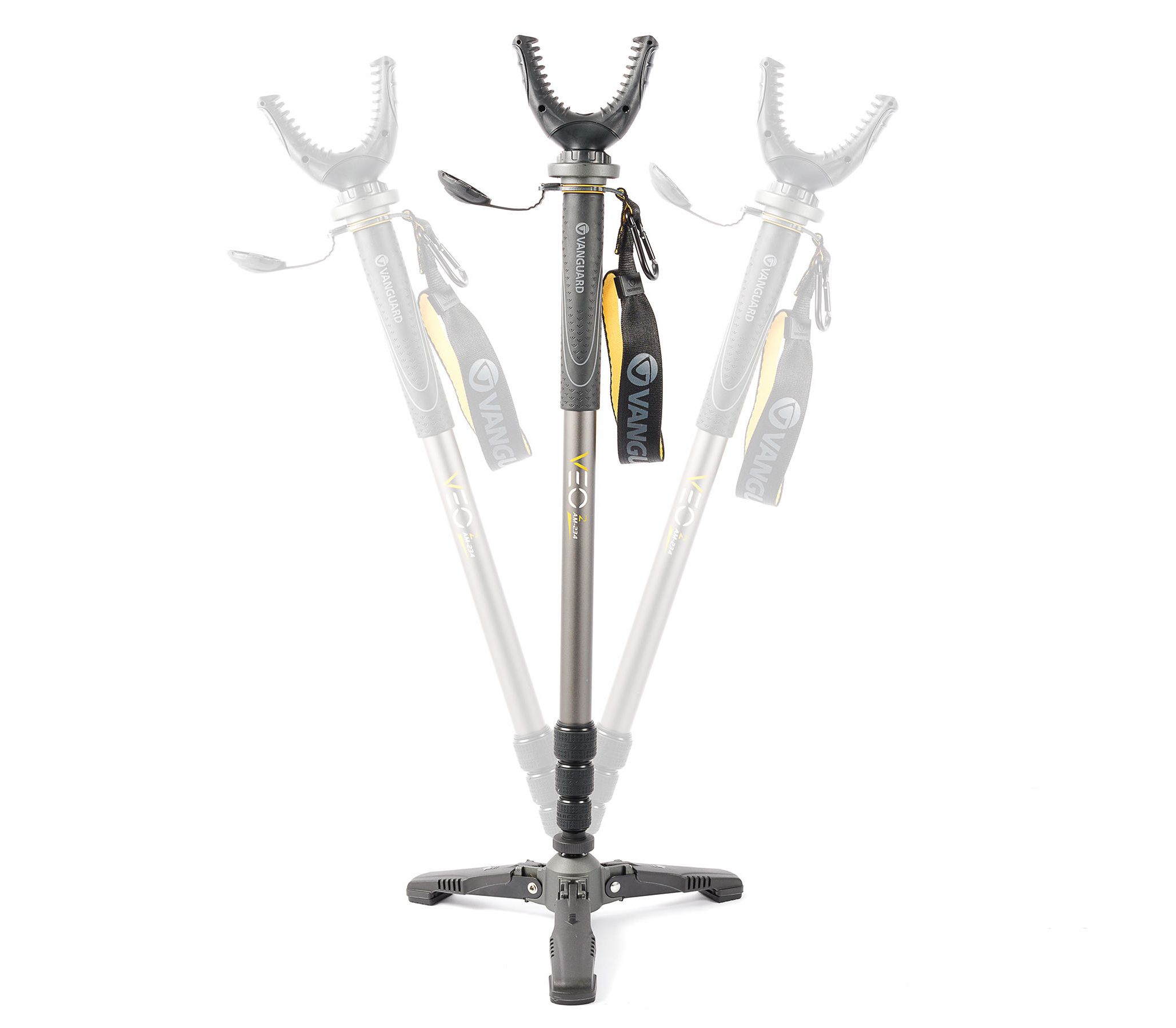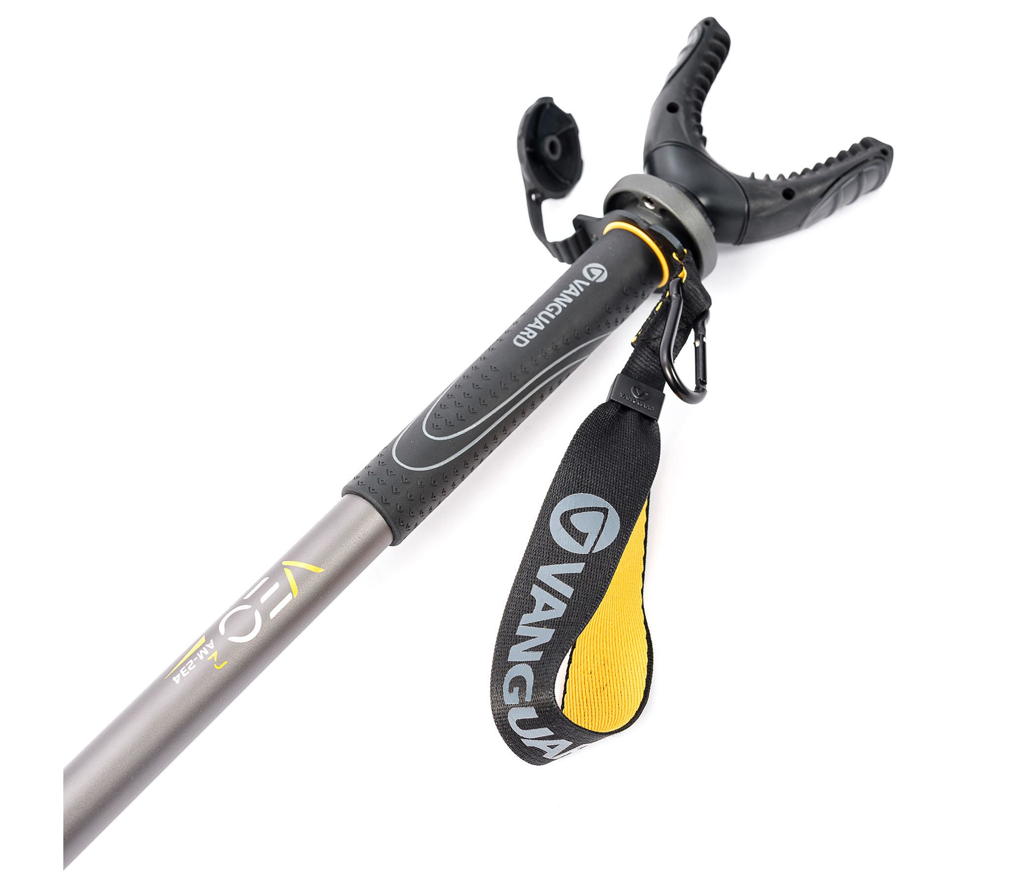 Vanguard VEO 2 AM-234TU - это четырехсекционный алюминиевый монопод, который, благодаря съемной U-образной вилке, может использоваться как для стрельбы, так и для фиксации фотокамеры, монокуляра или подзорной трубы. Кроме того, резиновая крышка, закрывающая верхний винт, качественный темляк на руку и каучуковая накладка на верхней секции позволяют удобно пользоваться моноподом и в виде опорной палки при передвижении по сложной местности.