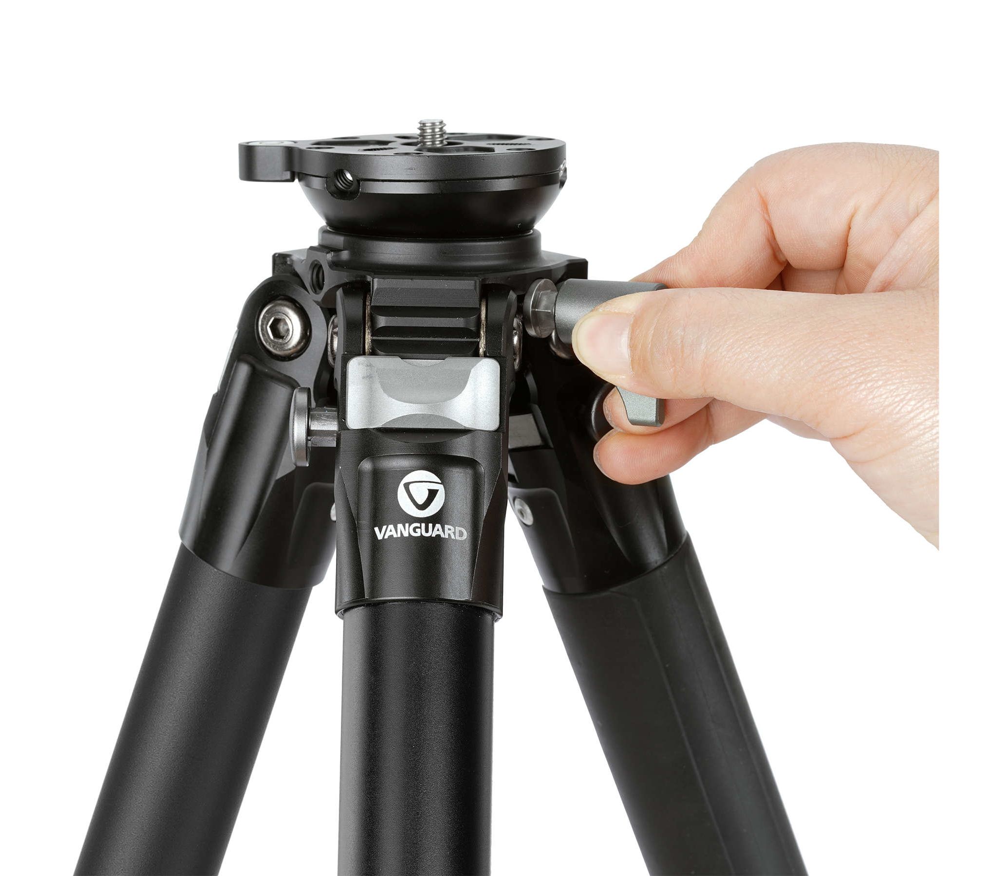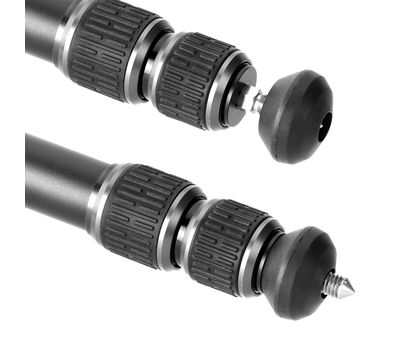 Трипод имеет три угла наклона ножек (23°, 50° и 80°) со сменными резиновыми и стальными наконечниками для стабильной установки на любом рельефе. При ветреной погоде устойчивость можно повысить, закрепив балласт на крюке центральной колонны.