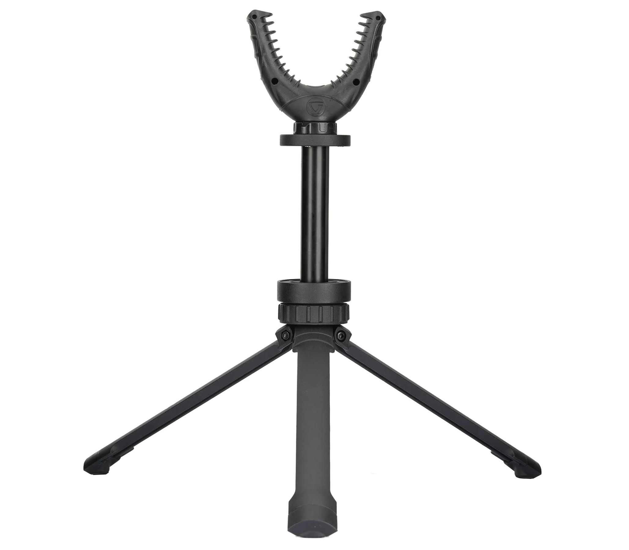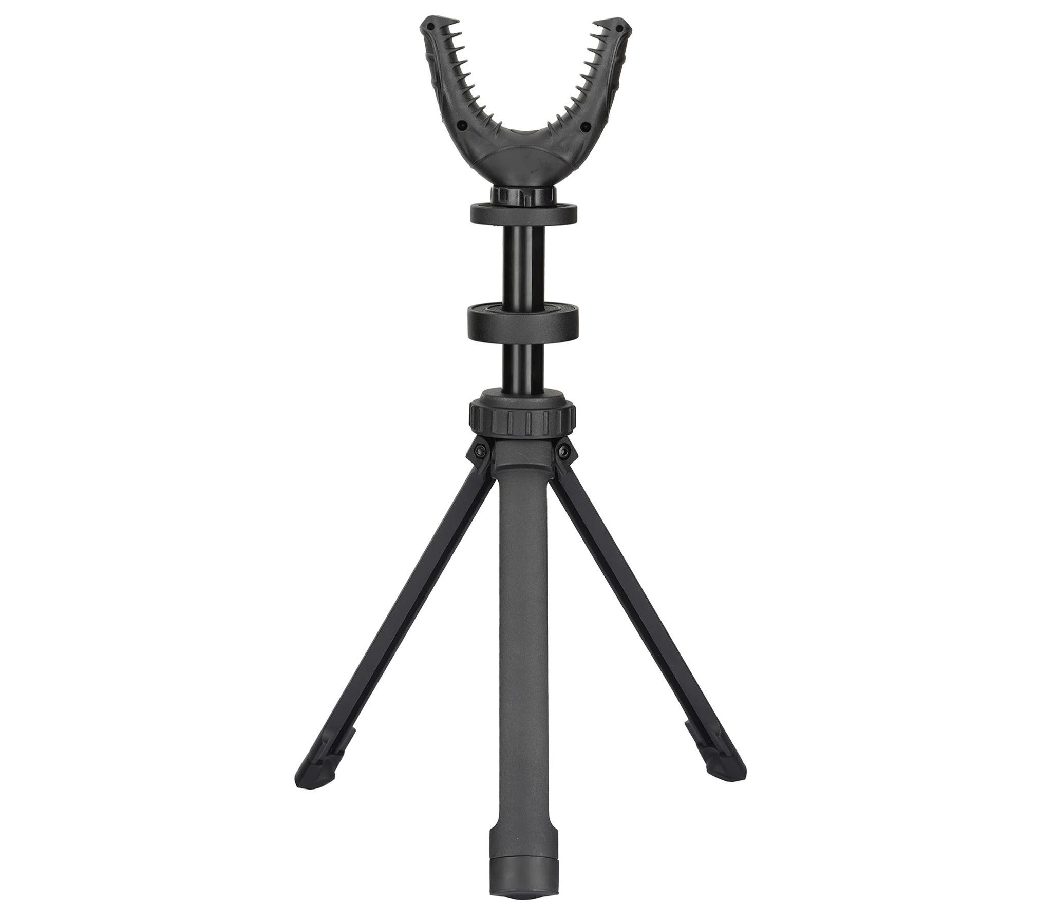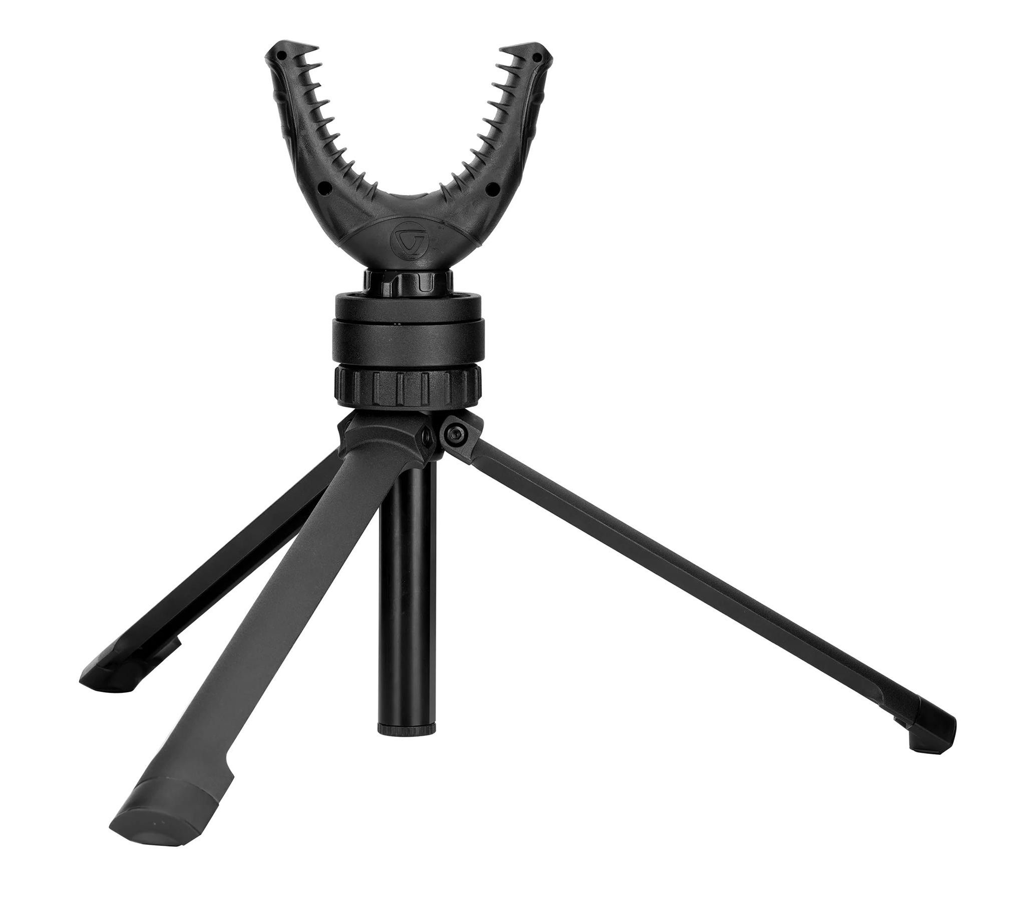 U-образная вилка имеет ширину 70 мм и подходит почти к любому стилю винтовки, благодаря стойким к царапинам ребрам, которые надежно захватывают приклад или цевье ружья. Панорамирование на 360° и регулируемая высота (от 19 см до 28,5 см) позволяют легко находить и наводить оружие на цель с минимальными движениями. Резиновые пятки алюминиевых ножек препятствуют скольжению подставки-трипода по поверхности во время стрельбы.