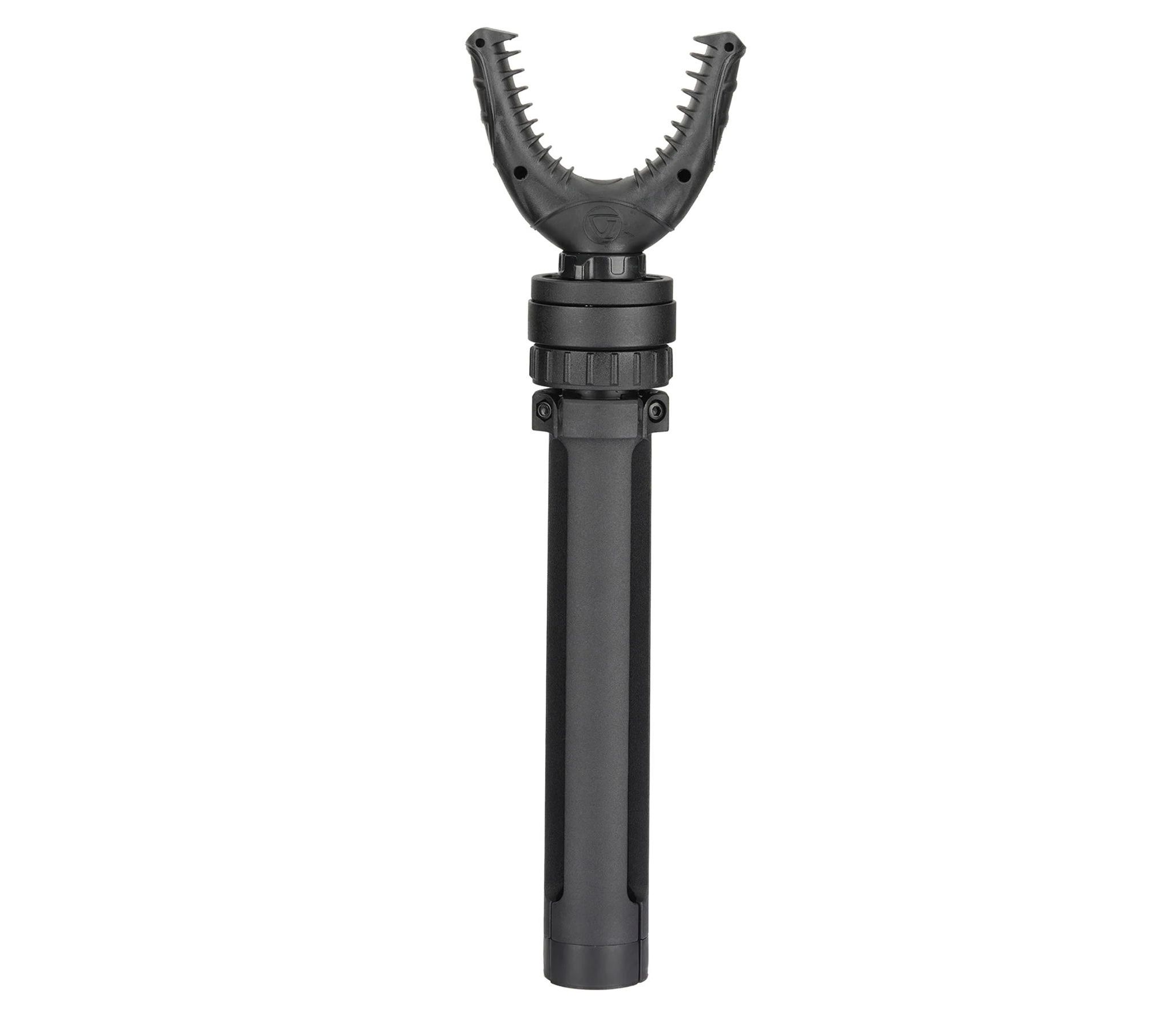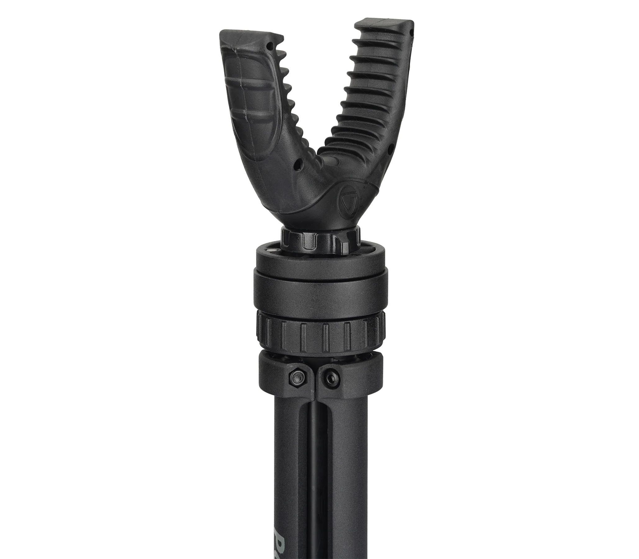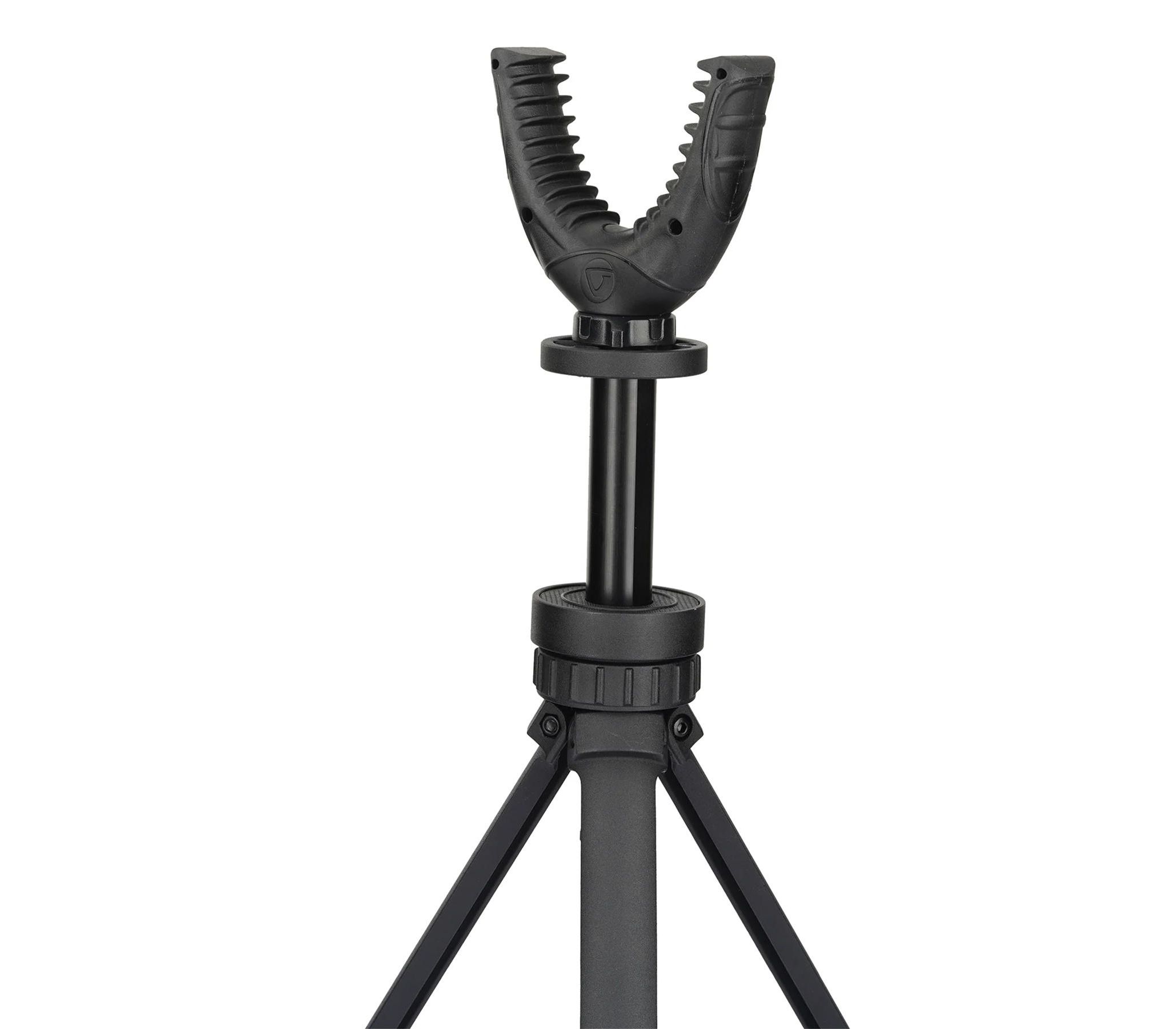 U-образная вилка имеет ширину 70 мм и подходит почти к любому стилю винтовки, благодаря стойким к царапинам ребрам, которые надежно захватывают приклад или цевье ружья. Панорамирование на 360° и регулируемая высота (от 19 см до 28,5 см) позволяют легко находить и наводить оружие на цель с минимальными движениями. Резиновые пятки алюминиевых ножек препятствуют скольжению подставки-трипода по поверхности во время стрельбы.