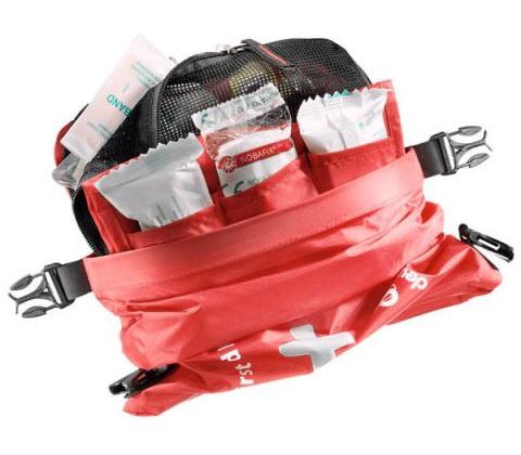 Герметичный вариант аптечки First Aid Kit M, защищает содержимое от воды, песка и пыли, так что аптечкой можно пользоваться во время ливня или водных походов. Если правильно закрыть сумку, проклеенные швы обеспечат герметичность
