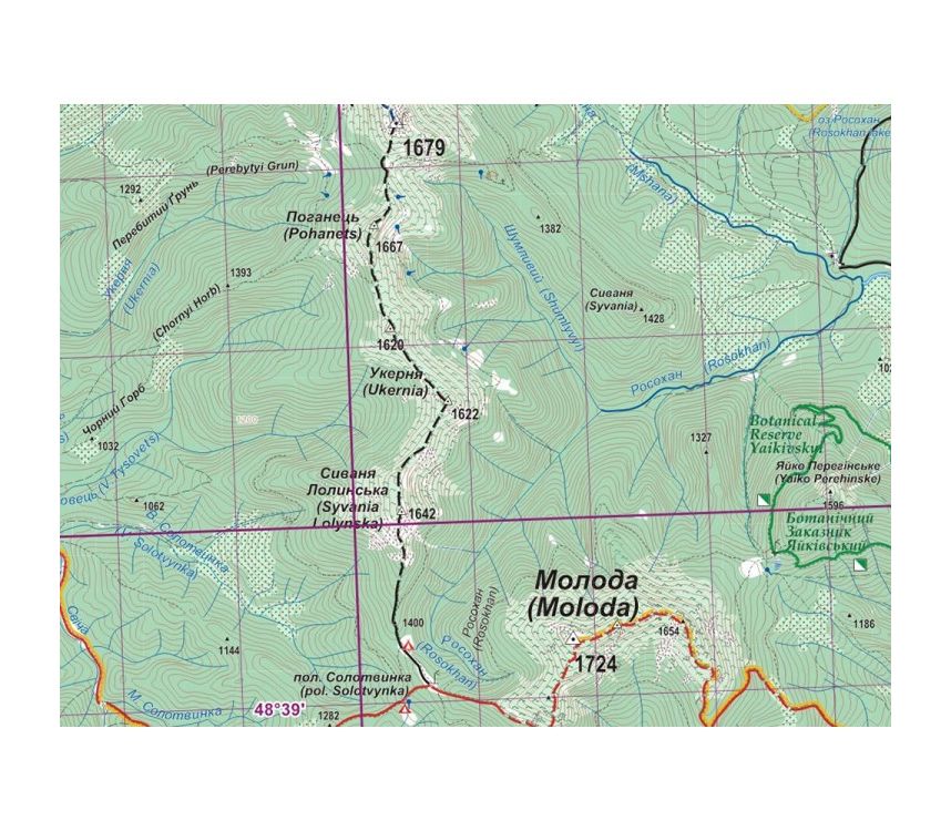 Детальная туристическая карта Западных Горган ламинированная. Дата издания карты - сентябрь 2016 г., (актуализация картографической основы 010, 2013-2014, 2016 г.). Исследованы с помощью навигатора и представлены на карте около 650 км троп и дорог, которые ранее не указывались ни на одной из выданных карт!