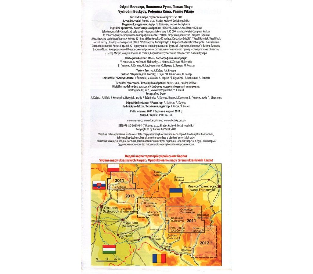 Карта Карпат, район Ужанского Национального парка.Восточные Бескиды; Полонина Руна; Пасмо Пікуя