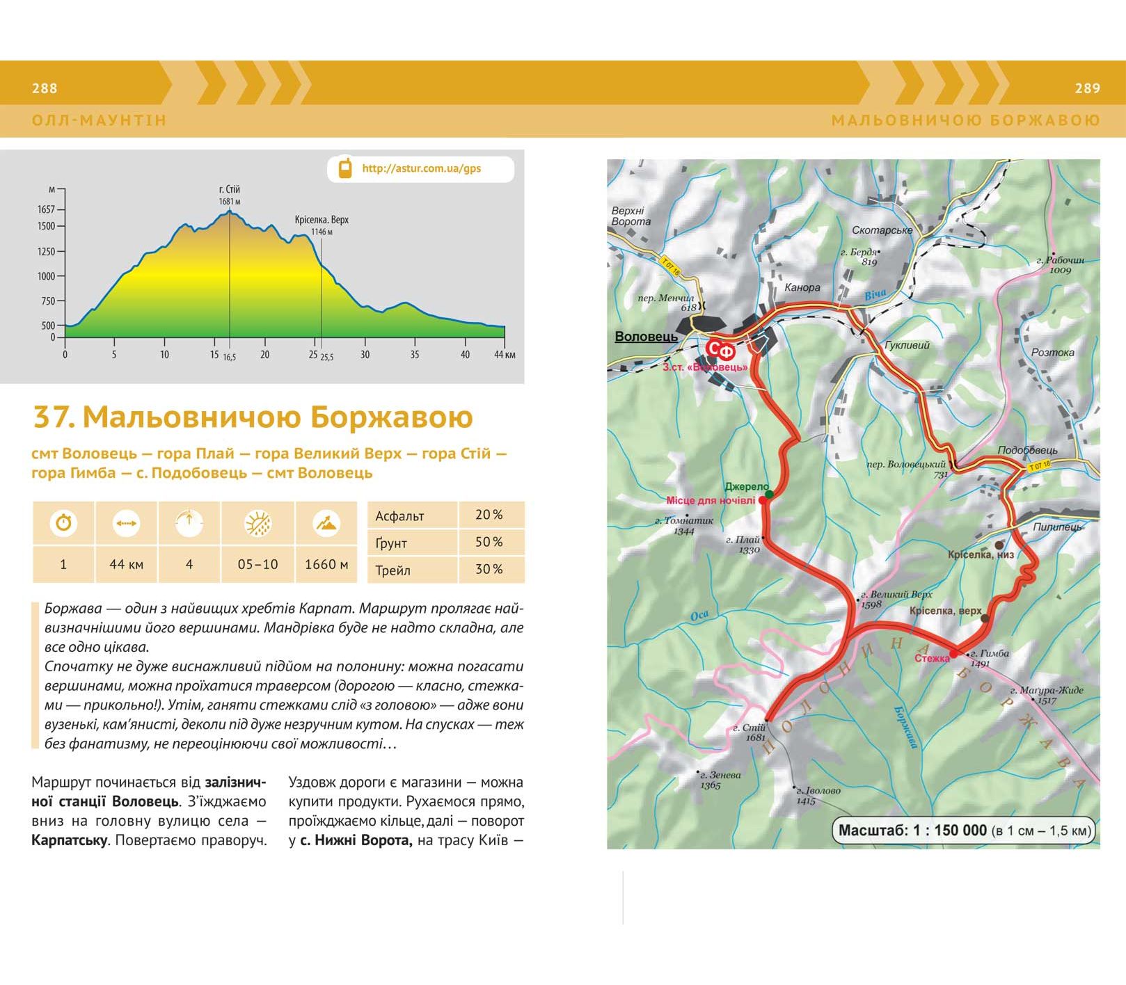 Корисні поради та довідково-пізнавальна інформація, вміщені у путівнику, допоможуть зробити вашу подорож незабутньою. Опис кожного маршрута супроводжують висотний графік, карта-схема та яскраві фотографії. Для власників навігаційних пристроїв стануть у пригоді GPS-треки маршрутів.