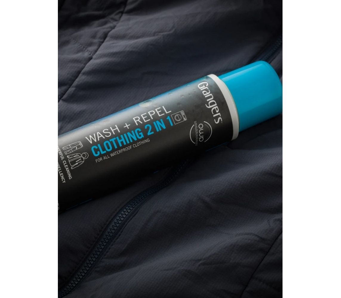 Grangers Wash + Repel Clothing 2 in 1 - средство для стирки изделий из мембранных тканей (Gore-Tex, eVENT). Хорошо удаляет грязь и неприятный запах, не повреждая и не снижая водозащитные свойства материалов. Возвращает дышащие свойства и восстанавливает водостойкое покрытие. Средство поставляется в бутылке, которая сделана из 100% вторично переработанного сырья (PCR) и пластиковых отходов океана (OWP).