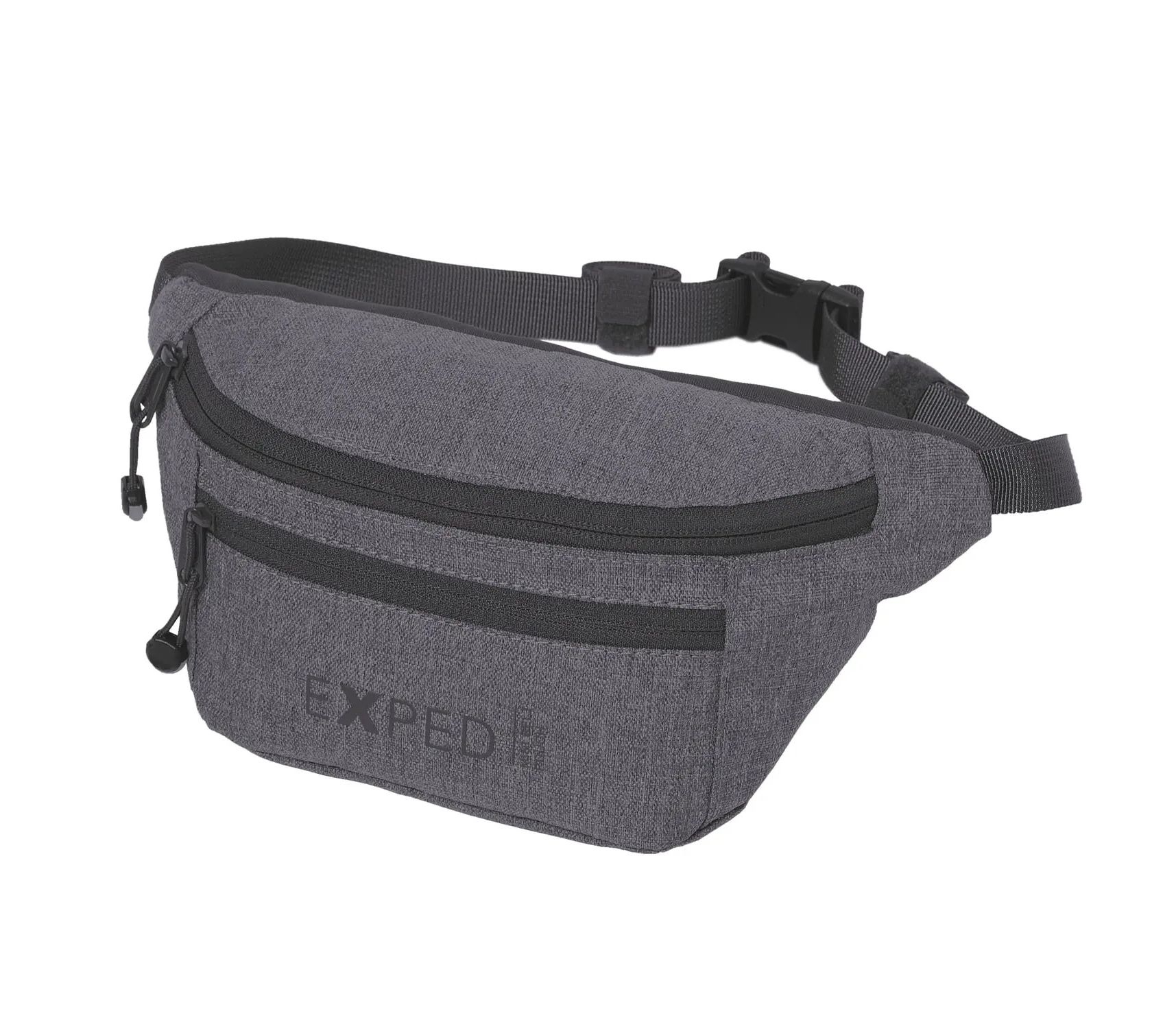 Exped Mini Belt Pouch — очень легкая и универсальная набедренная сумка. С двумя видимыми передними карманами, одним скрытым карманом, обращенным к телу, а также продуманным потайным отделением, он предлагает множество вариантов хранения ценных вещей или других мелких предметов.